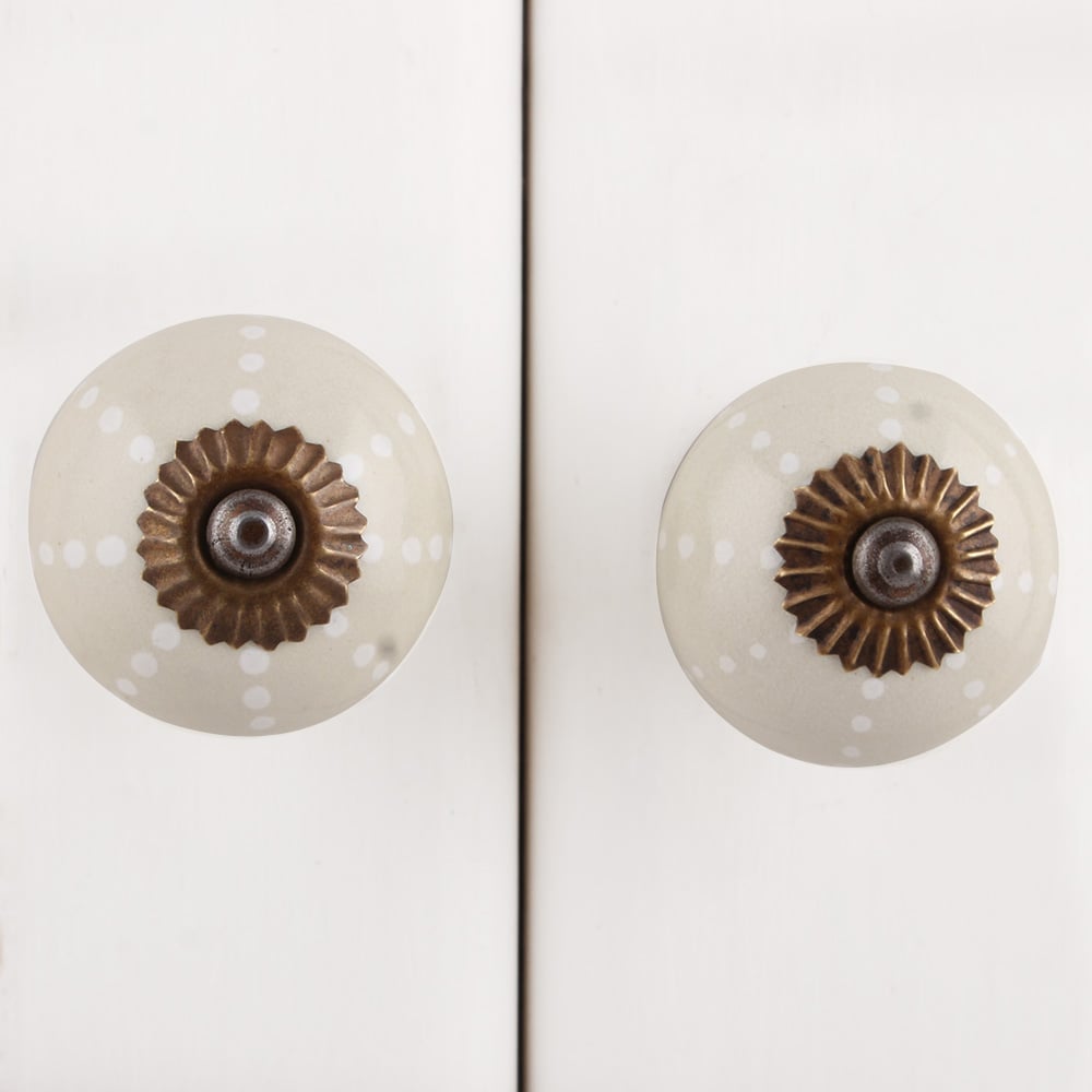 Cream White Line Dotted Knob. Ideal for kitchen cabinets, kitchen drawers, dining room, bed room, chest drawers, dressing tables, almirah