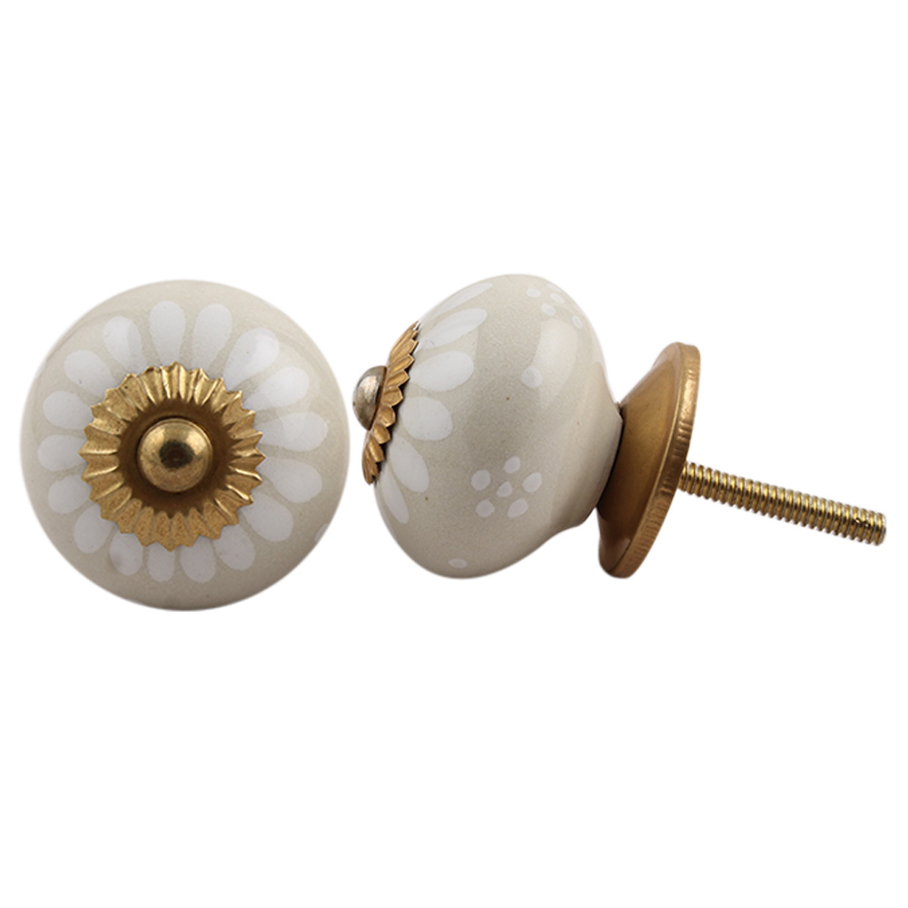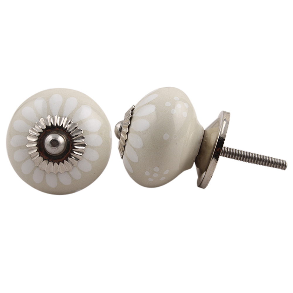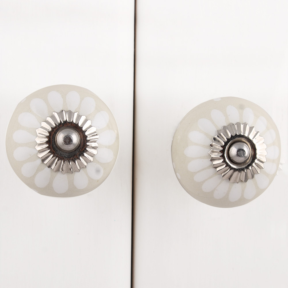 Cream White Sun Flower Dresser Knob. Ideal for kitchen cabinets, kitchen drawers, dining room, bed room, chest drawers, dressing tables, almirah