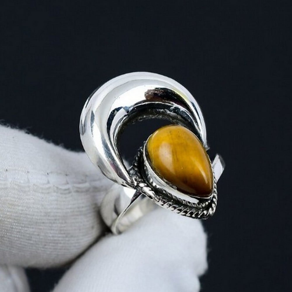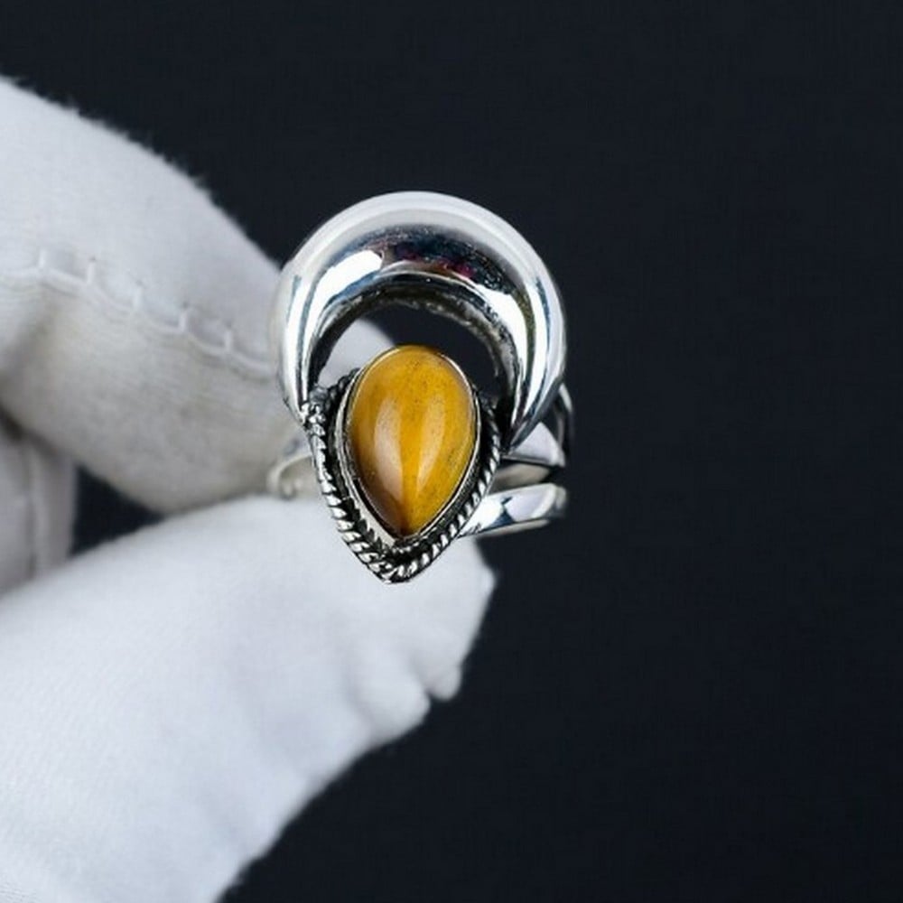 Delight in the allure of our crescent moon 925 sterling silver ring handmade boho jewelry, where natural tiger’s eye, 925 sterling silver and crescent moon come together to create a classic beauty. This ring is for minimalist fans, each piece reflecting individuality and care. Packed & quality-checked by Indianshelf.