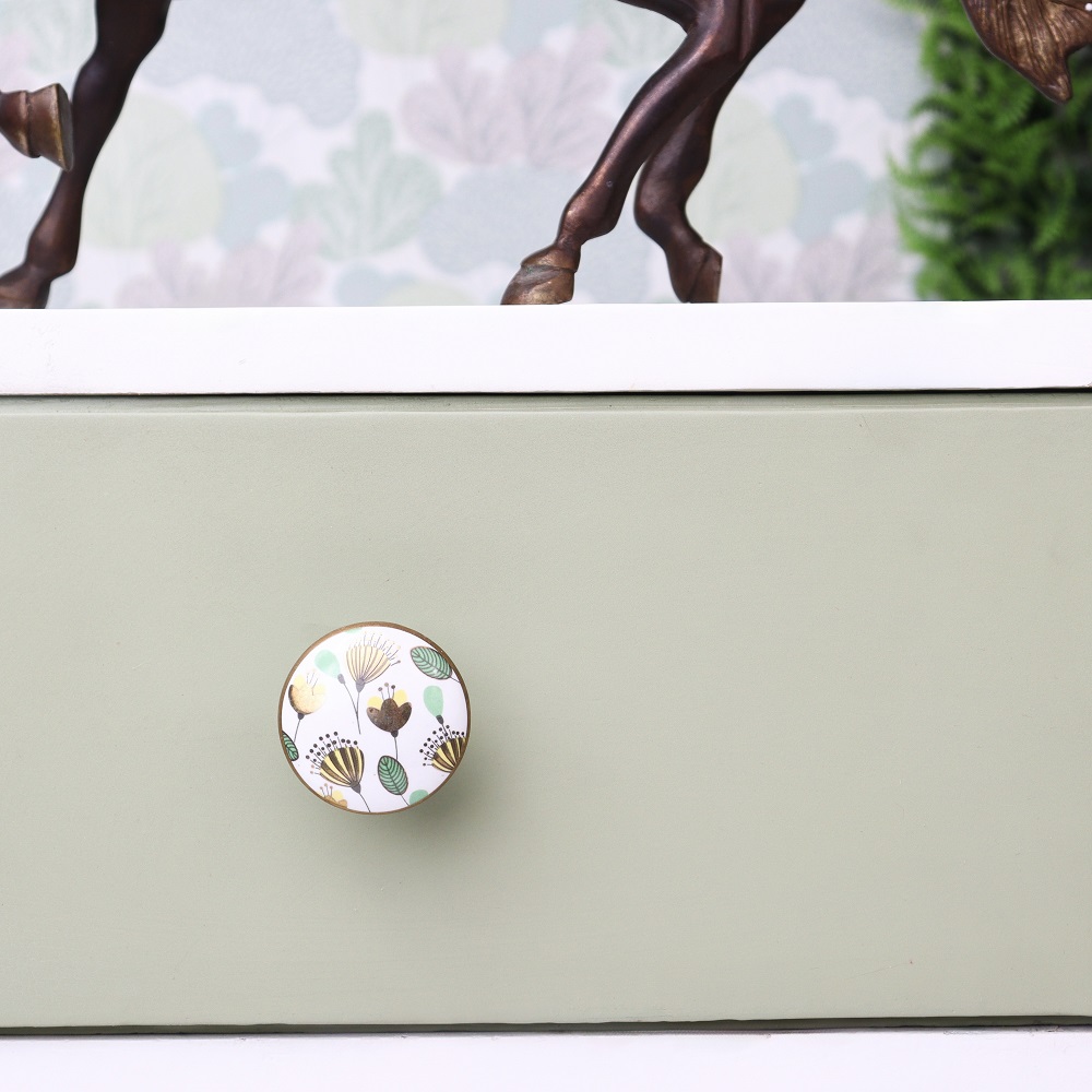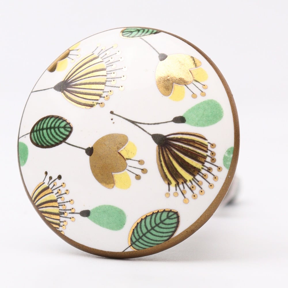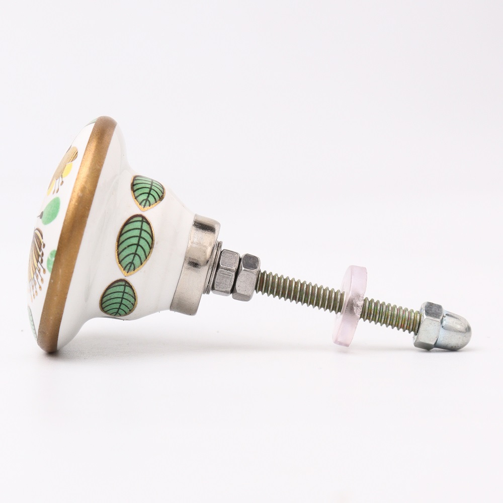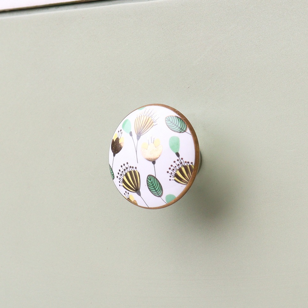 The Crown Imperial Flower Golden Pattern Ceramic Cabinet Knobs add a regal touch to any home. These elegantly designed knobs showcase a beautiful crown imperial flower pattern, highlighted by delicate golden accents that enhance the elegance of your cabinets and drawers. Constructed from high-quality ceramic, these knobs are not only visually appealing but also durable, making them an ideal choice for upgrading your furniture.