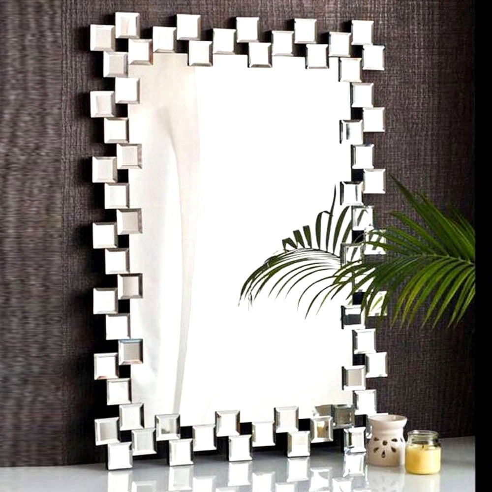Transform your interiors with this clear glass square-edge mirror featuring a striking frame of raised glass cubes. Its geometric precision and handcrafted clarity make it a perfect accent for elegant and modern décor. Packed & quality-checked by Indianshelf.
