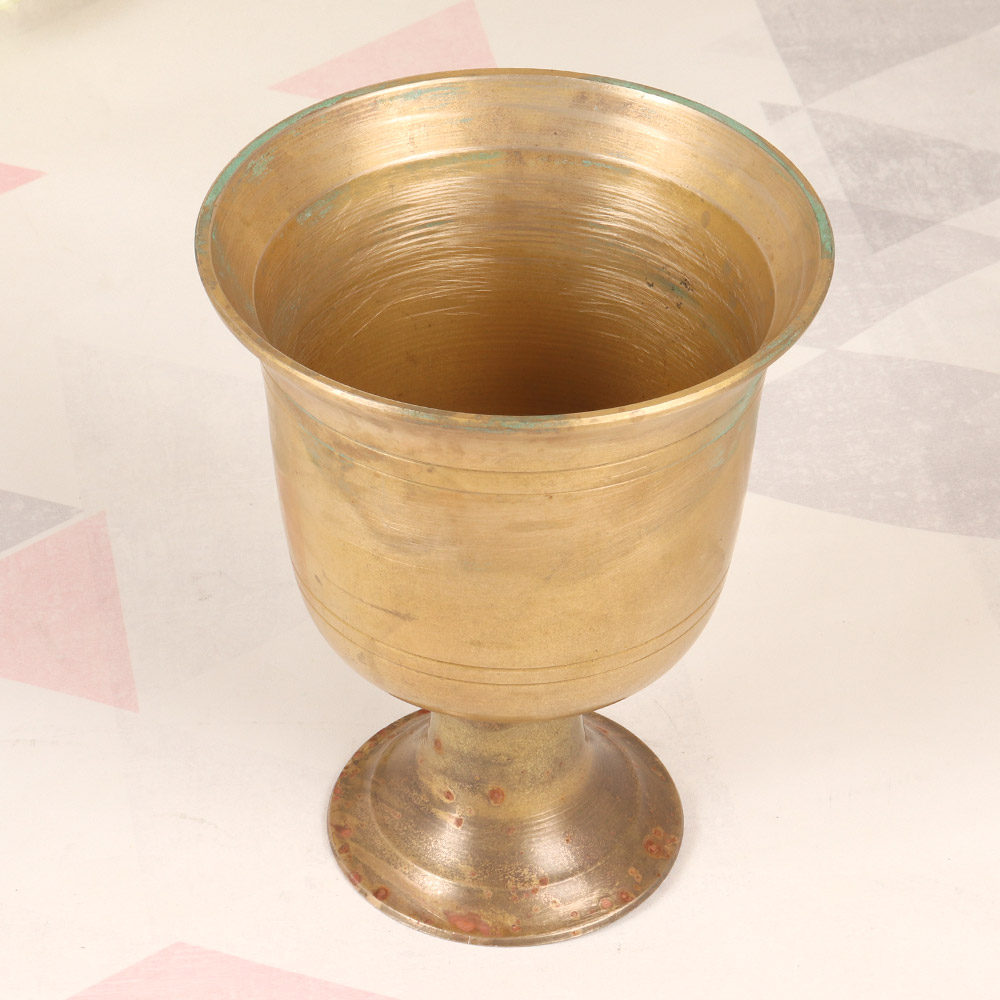 Elevate your home decor with the captivating charm of our Vintage Brass Flower Pot. Inspired by the rich artistic heritage of South India, this exquisite piece blends timeless elegance with a touch of rustic allure. Bring the beauty of the ancient South Indian artistry into your living space with this captivating flower pot. The warm, burnished tones of the brass create a striking contrast against the simple, understated finish, effortlessly complementing a variety of decor styles. Whether placed on an entryway table, bedroom nightstand, or office shelf, this versatile piece will elevate your surroundings with its timeless elegance. Designed to seamlessly integrate into any aesthetic, the Vintage Brass Flower Pot is a must-have for the discerning home decorator. Its compact size makes it perfect for those with limited space, while its sturdy construction ensures it will remain a cherished fixture for years to come. Infuse your living space with the rich cultural influences of South India and let this stunning piece become the centerpiece of your botanical display or decorative vignette.