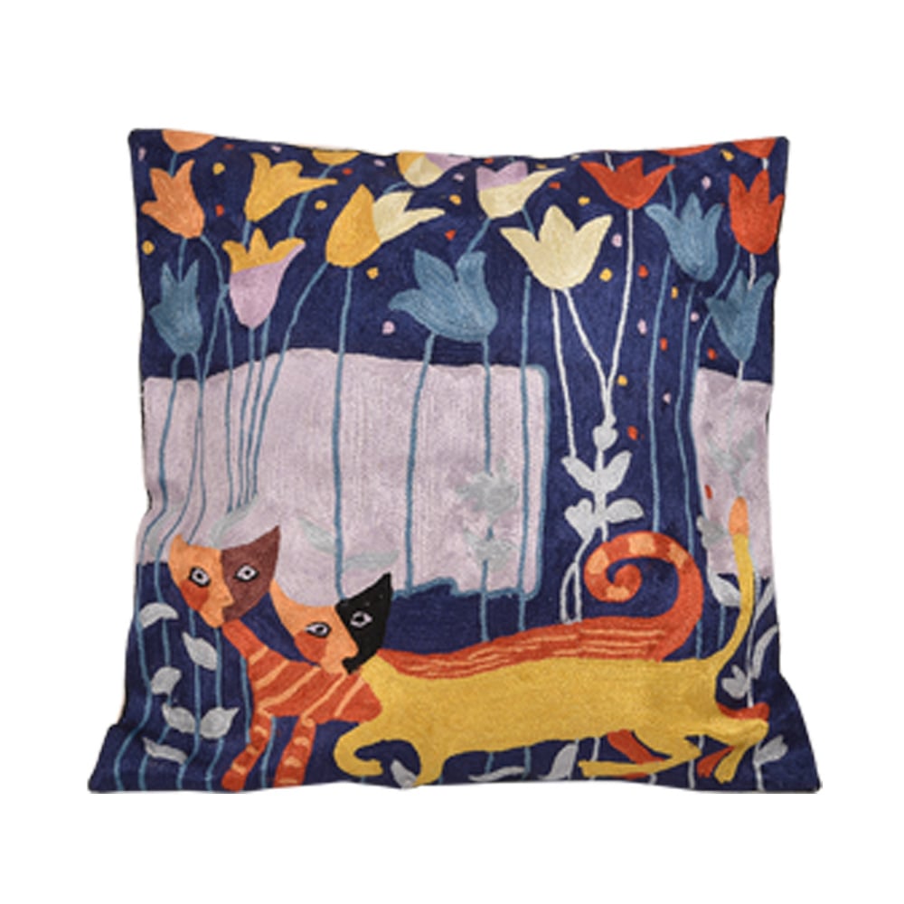 Unique hand embroidery cushion cover from Kolkata done by small craftsmen in their households. These cushion covers are amazingly hand crafted supporting eye capturing designs and colours. Vibrant colour combination, vivid patterns, colour fastness and perfect finishes are few characteristics of these cushion covers. Highly durable and easy to maintain and matches any type of decor.