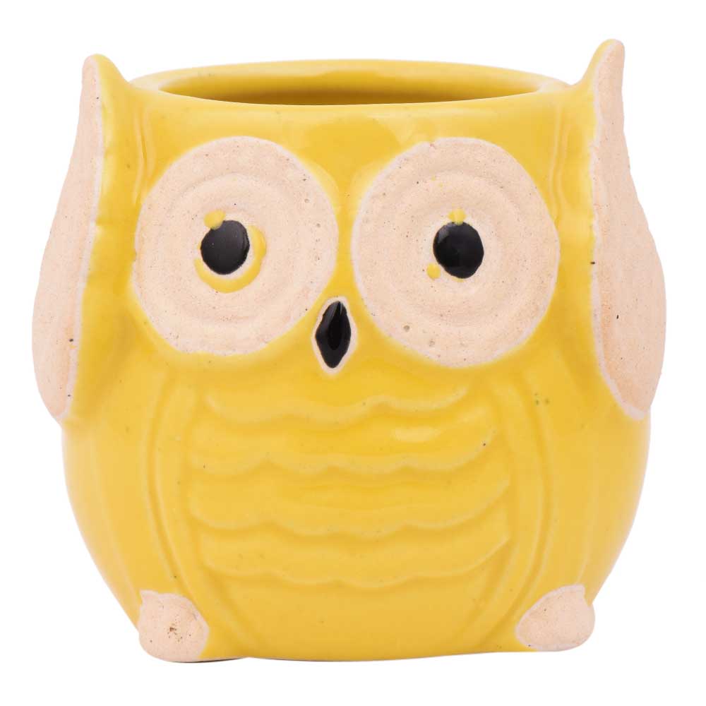 Cute Yellow Owl Ceramic Pot Planter  to decorate your home, office desk, club, hotel interiors, balcony,garden,Indoor,Outdoor decoration, table top ,window sill, or any place as a decor for your living room, bedroom. Gift for your friends and relatives.