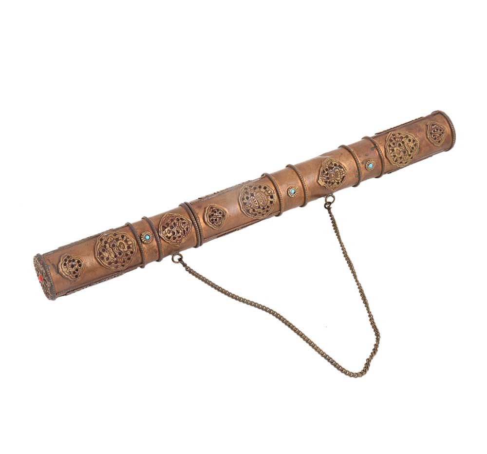 Cylindrical Scroll Case Message Box Islamic Motifs In Copper And Brass