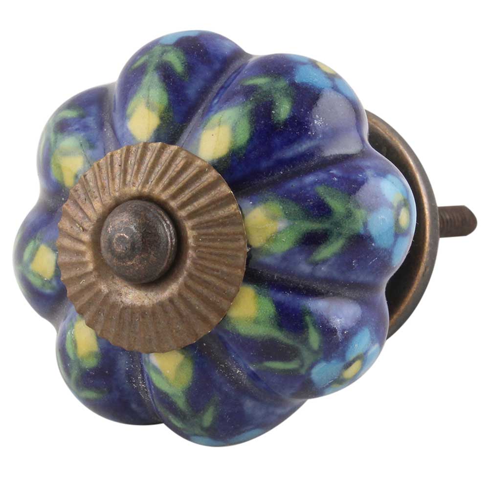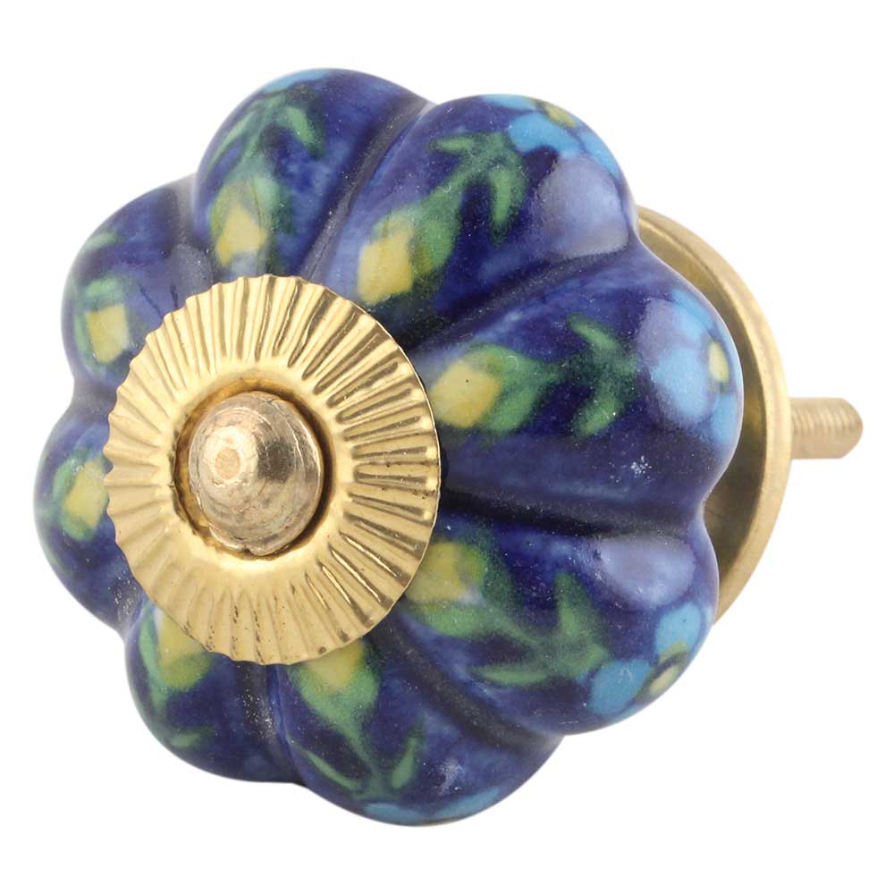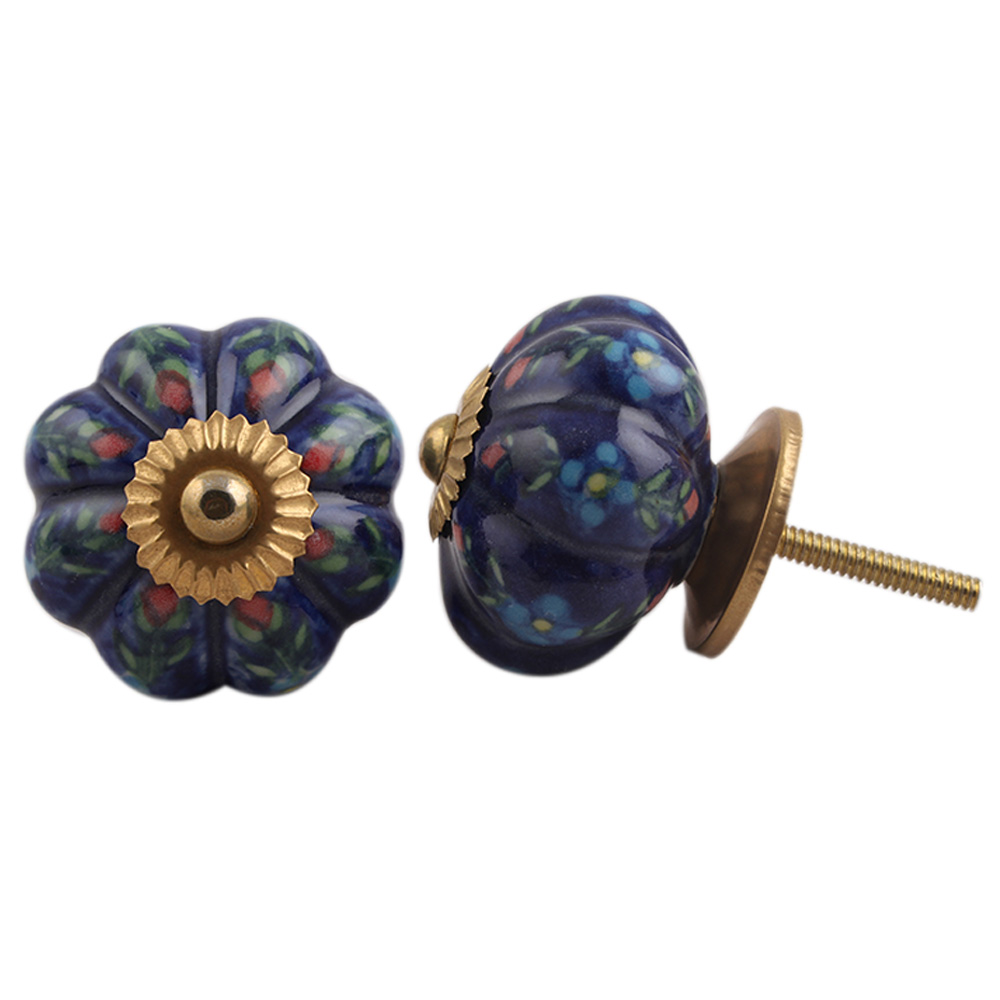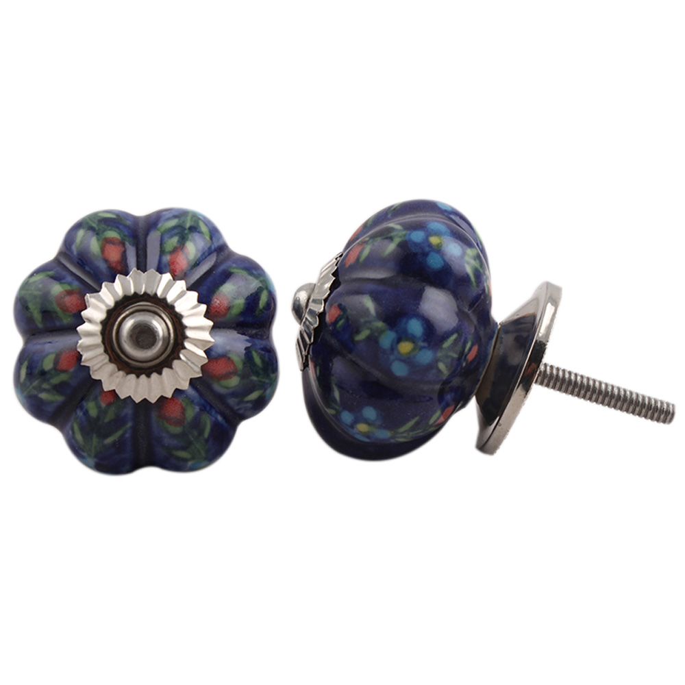 Dark Blue Floral Melon Knob Ideal for kitchen cabinets, kitchen drawers, dining room, bed room, chest drawers, dressing tables, almirah