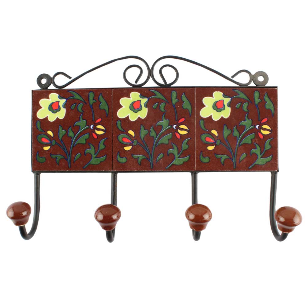 Dark Brown With Forest Green Leaf Ceramic Tile Hook