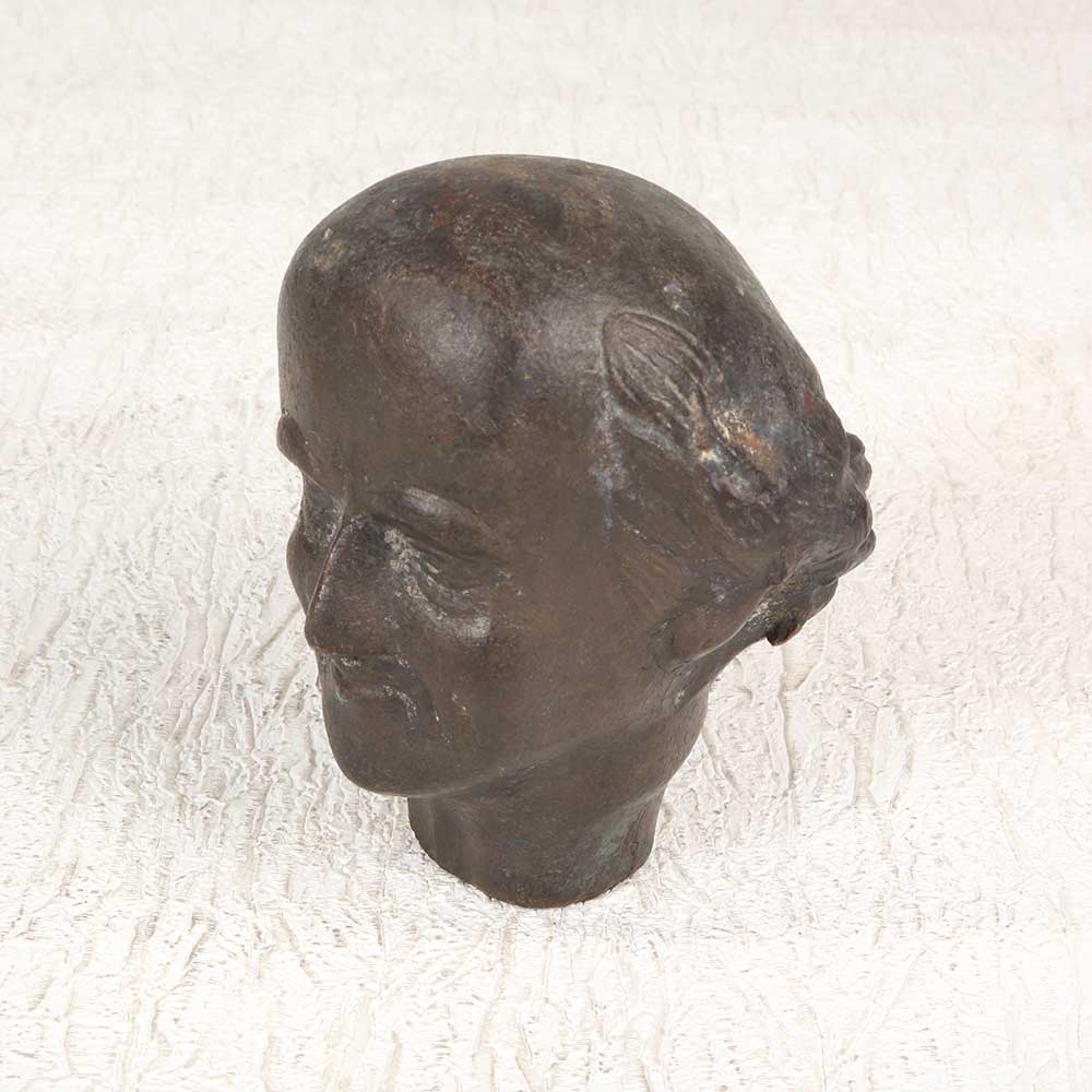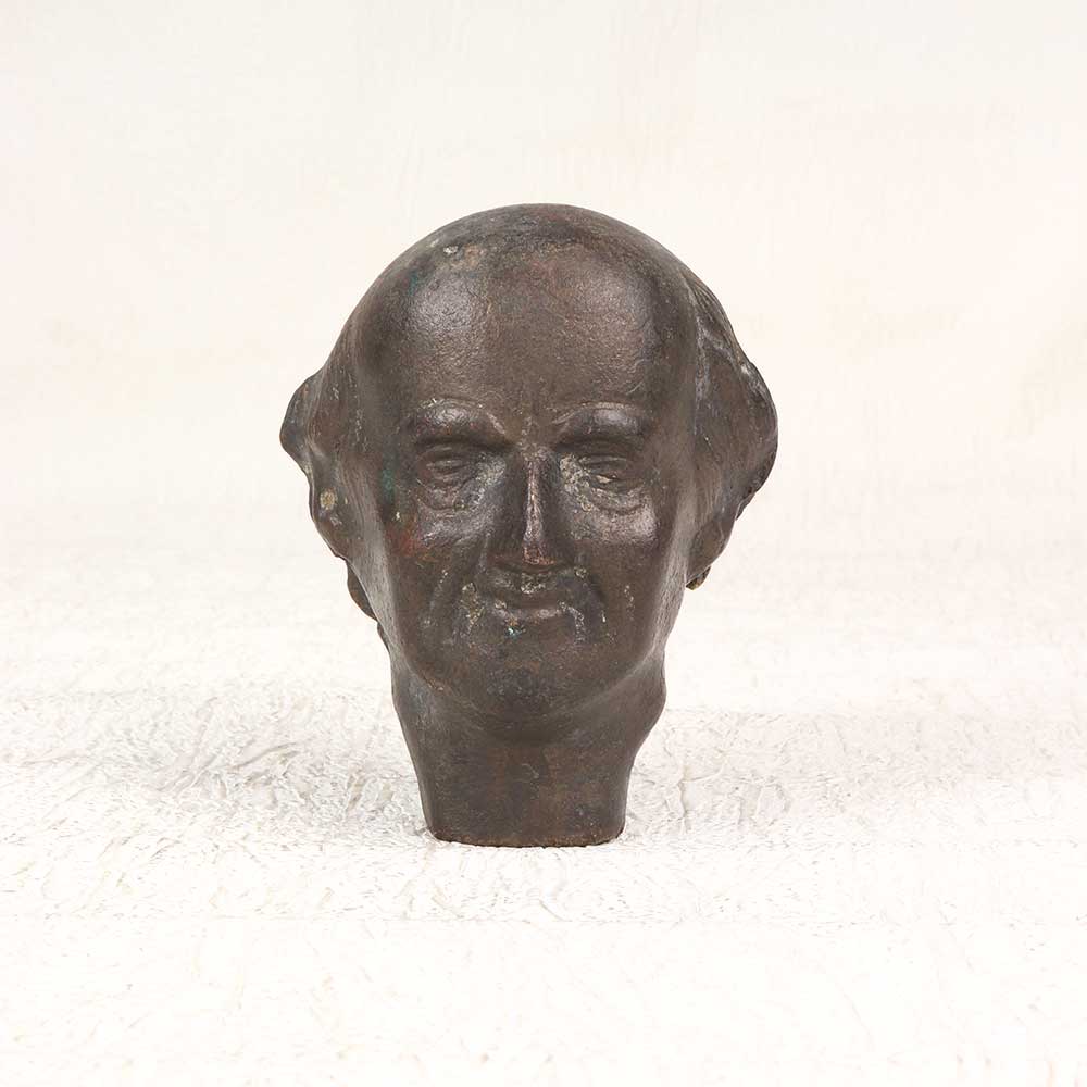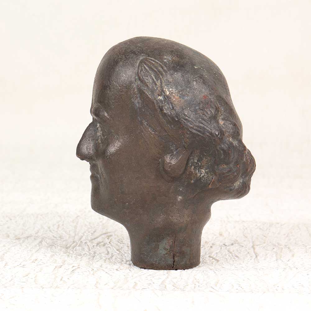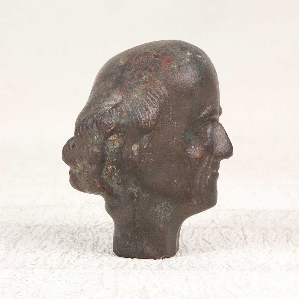 Own a piece of history with this striking vintage brass male head statue. Crafted with exquisite detail, this dark finished bust brings European art to life in your home. This gorgeous male head bust dates back to the early 20th century and reflects the neoclassical sculpting techniques of that era. The strong, chiseled features and stoic expression encapsulate the European aesthetic of the time. Each groove and contour has been carefully shaped to create a realistic and visually arresting work of art. Perfect for art lovers and antique collectors, this vintage statue makes a striking decorative accent in living rooms, studies, and other sophisticated spaces. Place it on a console table, bookshelf, or pedestal to display the craftsmanship. Let this brass male head statue add a touch of old-world charm and inspiration to your home.