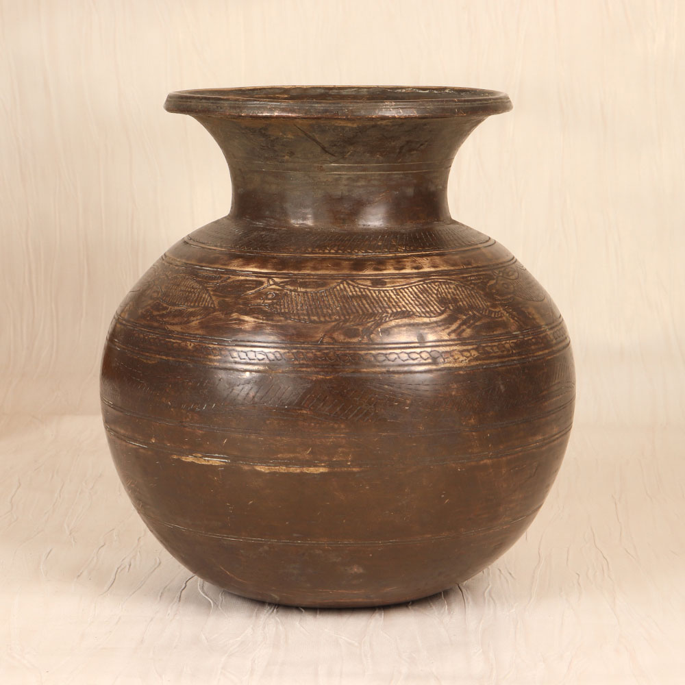 This stunning vintage brass holy water pot is a must-have for anyone seeking to infuse their home with timeless spiritual energy. Crafted by the skilled artisans of Gujarat, India, this heirloom-quality piece features intricate engraving that showcases the region's renowned artistic traditions. Durable and long-lasting, this holy water pot is perfect for daily use in your puja room or to display as a centerpiece in your living space. The elegant design complements a variety of decor styles, from traditional to modern. Fill it with blessed holy water to purify the air, or use it to hold flowers, incense, or other offerings during your spiritual rituals. Whether you're looking to deepen your personal practice or seeking a beautiful accent piece to elevate your home, this vintage brass holy water pot is a investment that will be cherished for generations. Bring the tranquil energy of ancient spiritual traditions into your life with this exquisite handcrafted treasure.