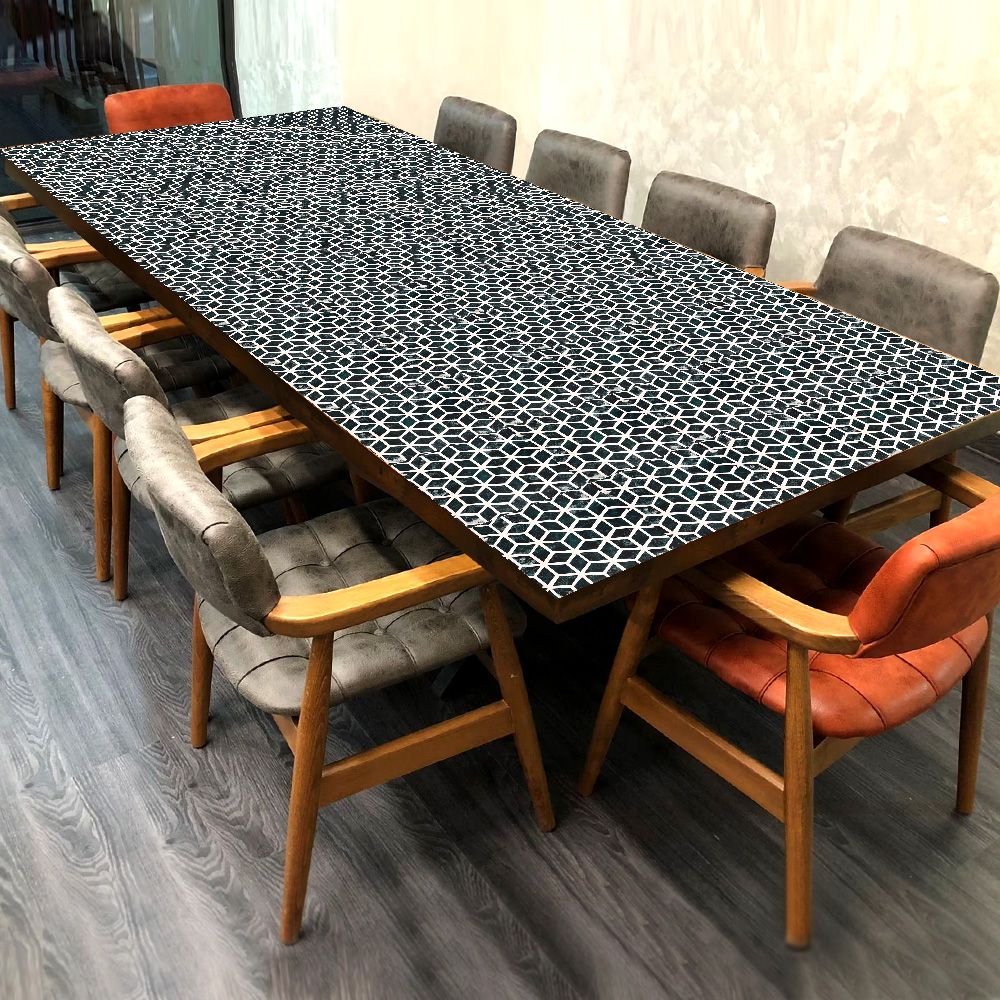 Buy a table top online that is a captivating addition to your home, office, restaurant, or hotel. Handcrafted by highly skilled Indian craftsmen, this exquisite table top showcases a mesmerizing cube-shaped pattern engraved in a striking black and white colour finish. Its intricate design effortlessly captures attention and adds a touch of elegance to any space. Crafted with a combination of wood, acrylic, and resin, this table top embodies the perfect blend of natural beauty and modern aesthetics. The vibrant colours and high-quality craftsmanship make it an ideal decorative piece for your dining table, coffee table, or even as nesting tables. Its versatility allows it to seamlessly complement various interior styles, enhancing the overall ambiance of any room. Moreover, this exquisite table top serves as a thoughtful gift for your loved ones on special and festive occasions. Its unique design and exceptional quality make it an unforgettable present that will be cherished for years to come. Elevate your surroundings with the Wood, Acrylic, and Resin Table Top, a testament to the skill and creativity of Indian artisans.