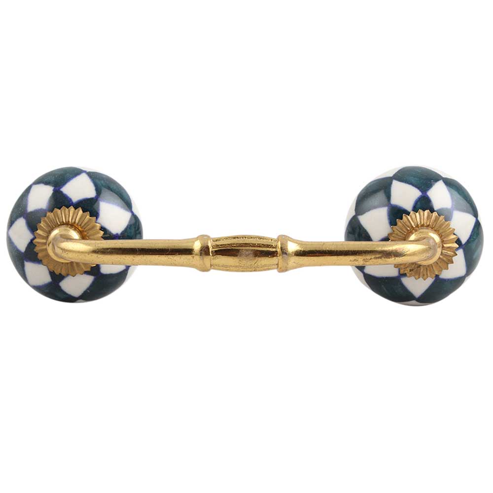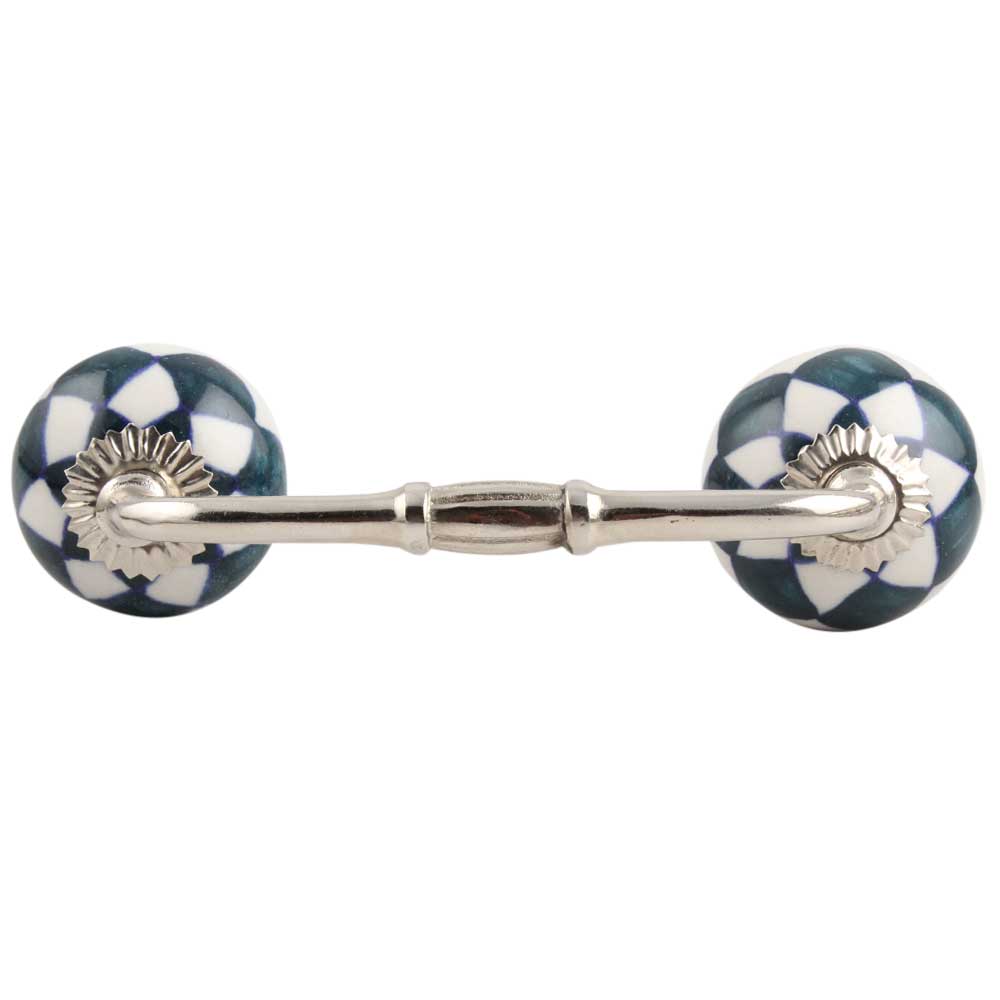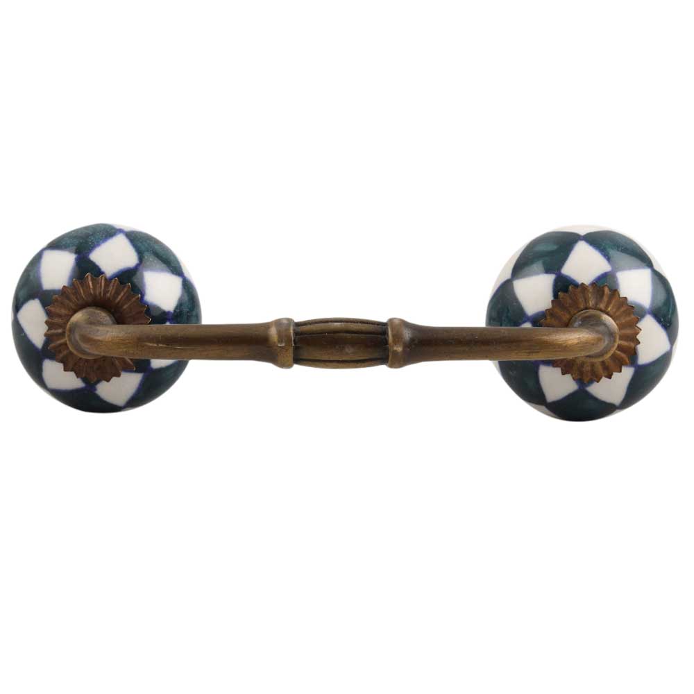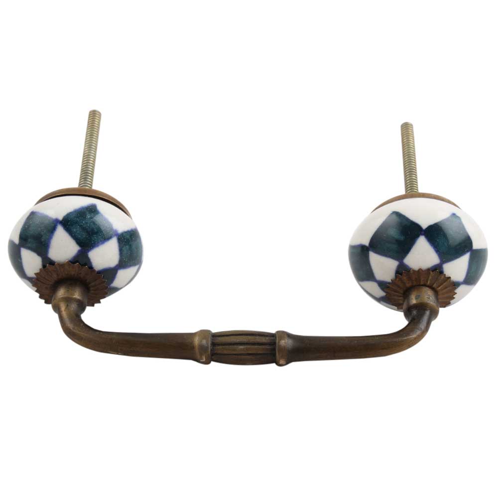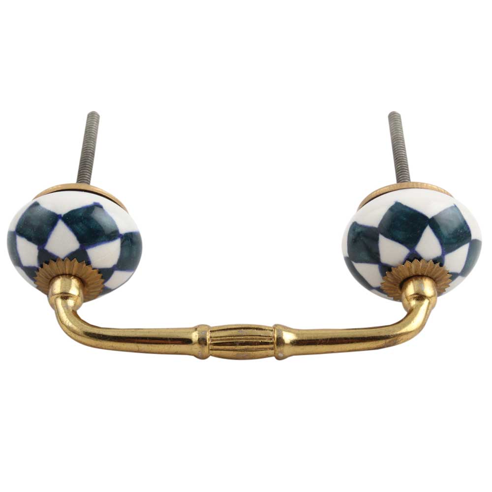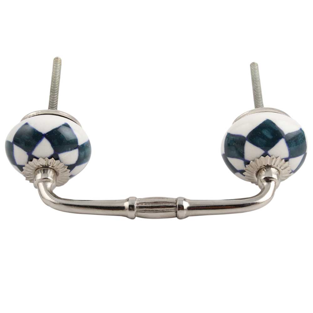 Dark Green Check Ceramic Bridge Handle. Ideal for Drawer, Dresser, Cabinet, Wardrobe, Cupboard and Almirah.