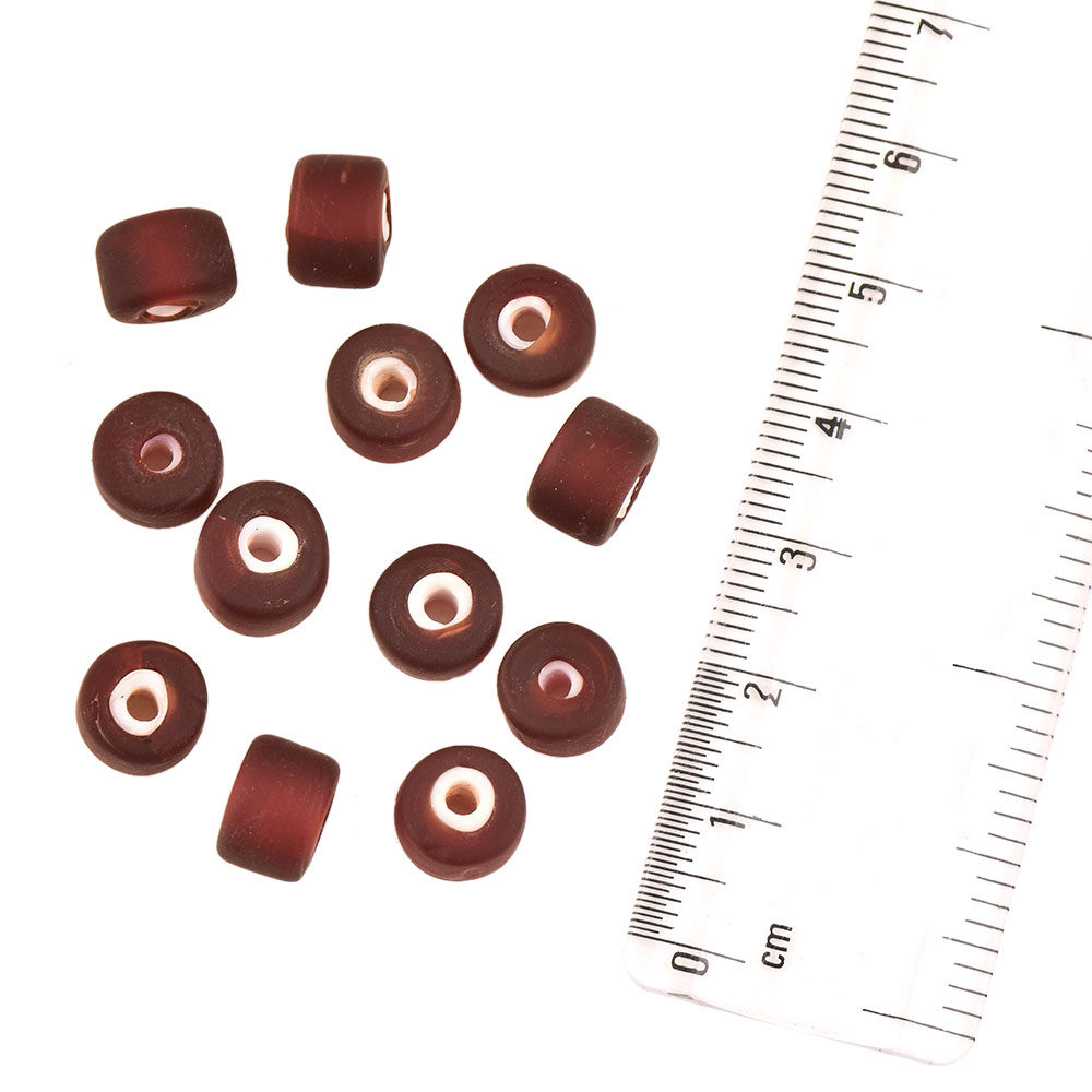 Dark Maroon Round Cylinder Shape Loose Glass For Making Jewelry (12 in Pack)