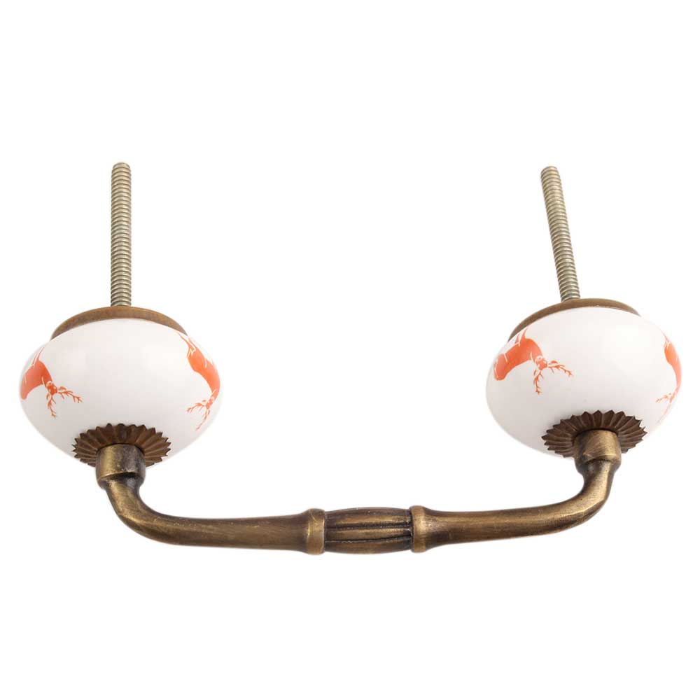 Dark Orange Standing Rein Deer Ceramic Bridge Handle. Ideal for Drawer, Dresser, Cabinet, Wardrobe, Cupboard and Almirah.