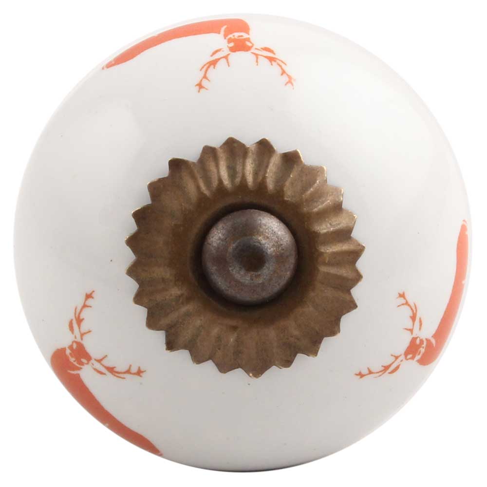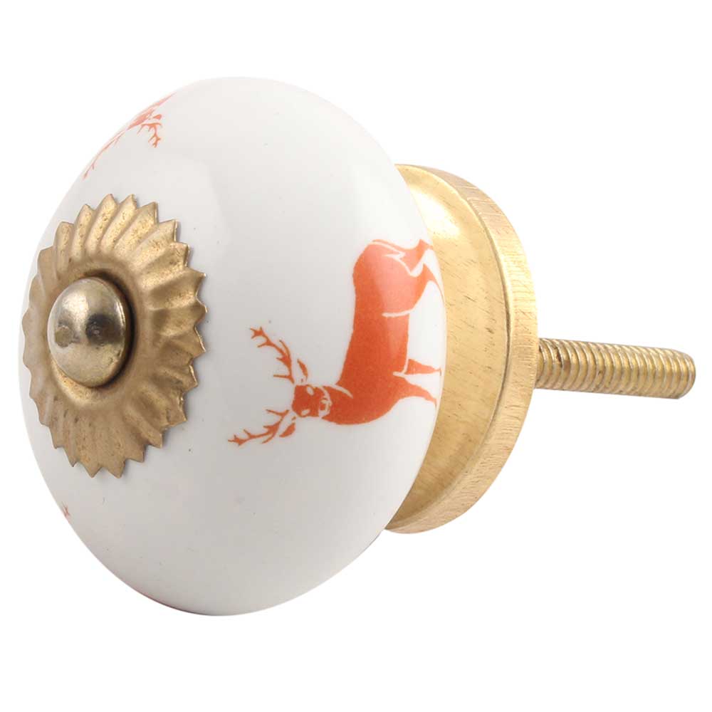 Dark Orange Standing Rein Deer Pattern Ceramic Cabinet Knob Online