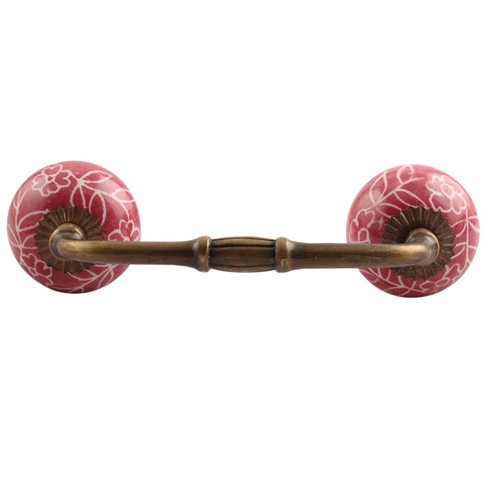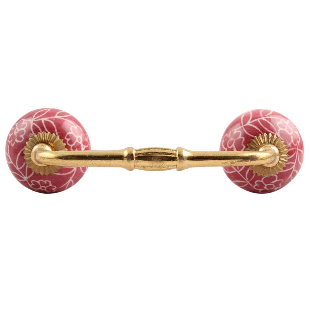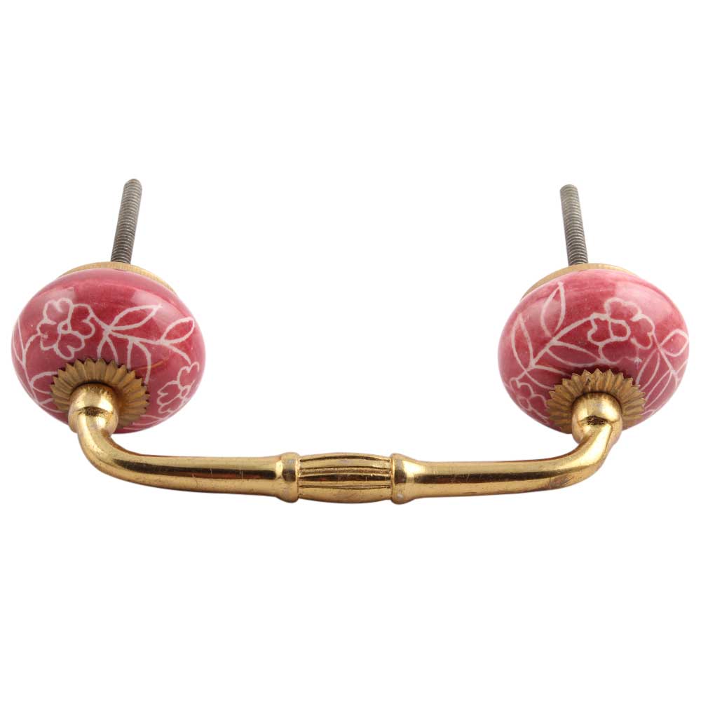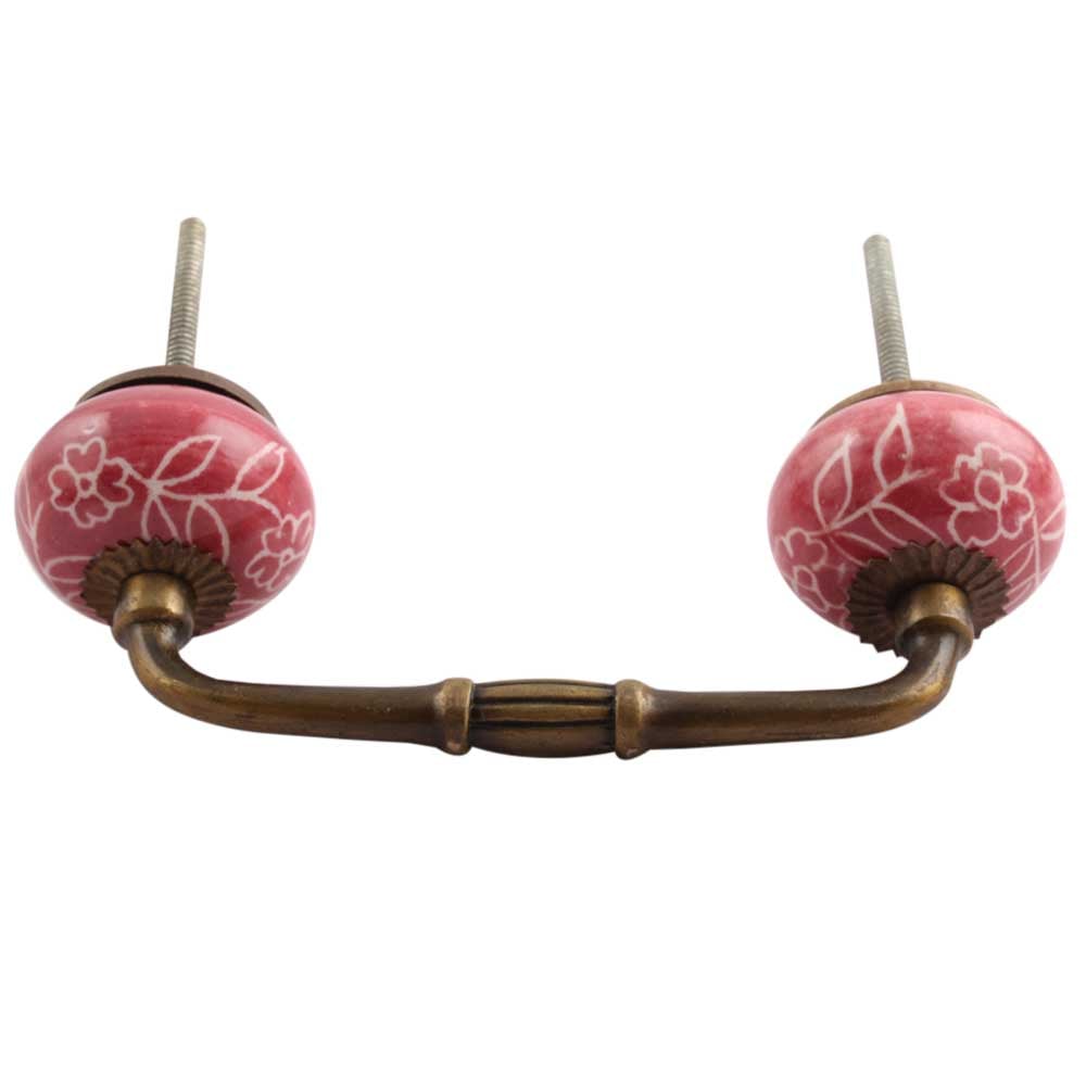 Dark Pink Leaf Floral Ceramic Bridge Handle. Ideal for Drawer, Dresser, Cabinet, Wardrobe, Cupboard and Almirah.