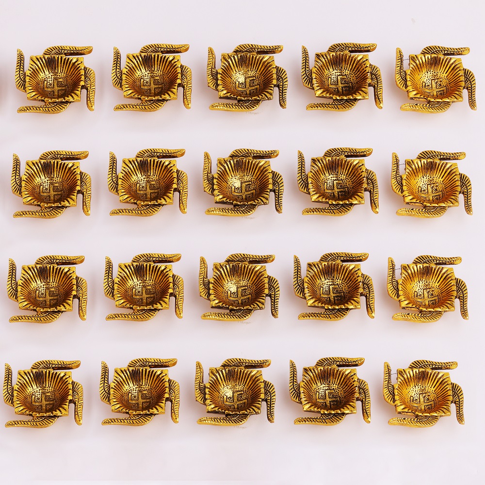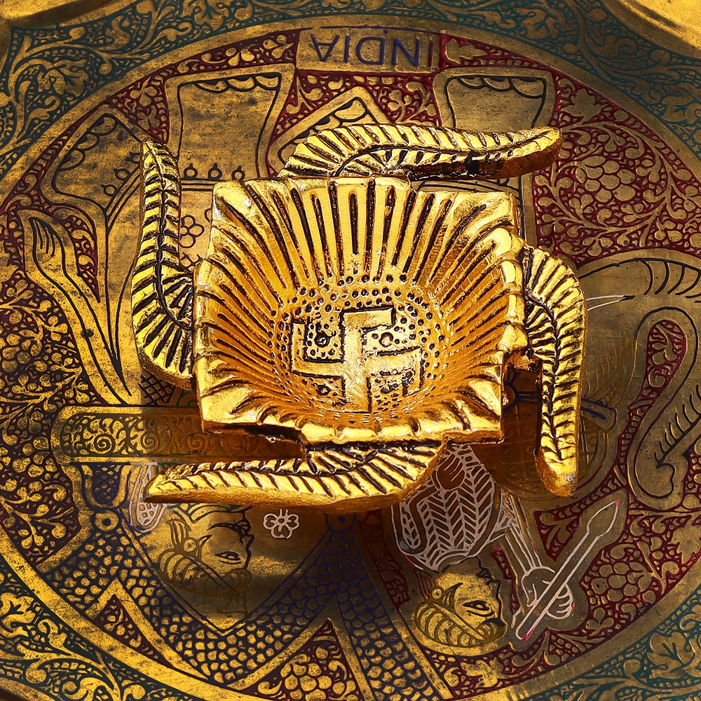 This beautifully crafted Aluminium Diya, designed in a unique Swastika shape, is a perfect addition to your home during festivals or as part of your daily rituals. The Swastika is a sacred symbol representing good fortune and positive energy, making this oil lamp ideal for bringing prosperity, peace, and happiness into your space.