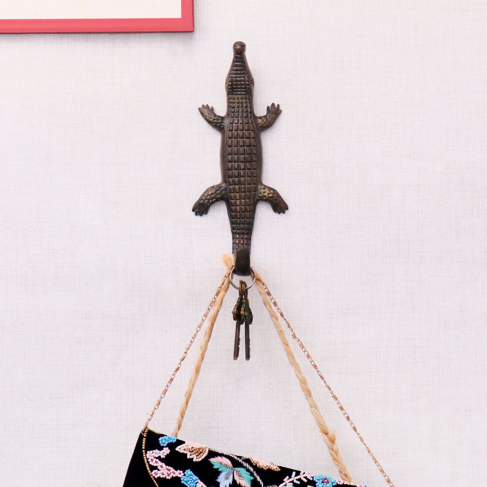 Decorative Antique Iron Crocodile Design Wall Hook is perfect for hanging towels, clothes, hats, bags, keys, scarves and jackets.