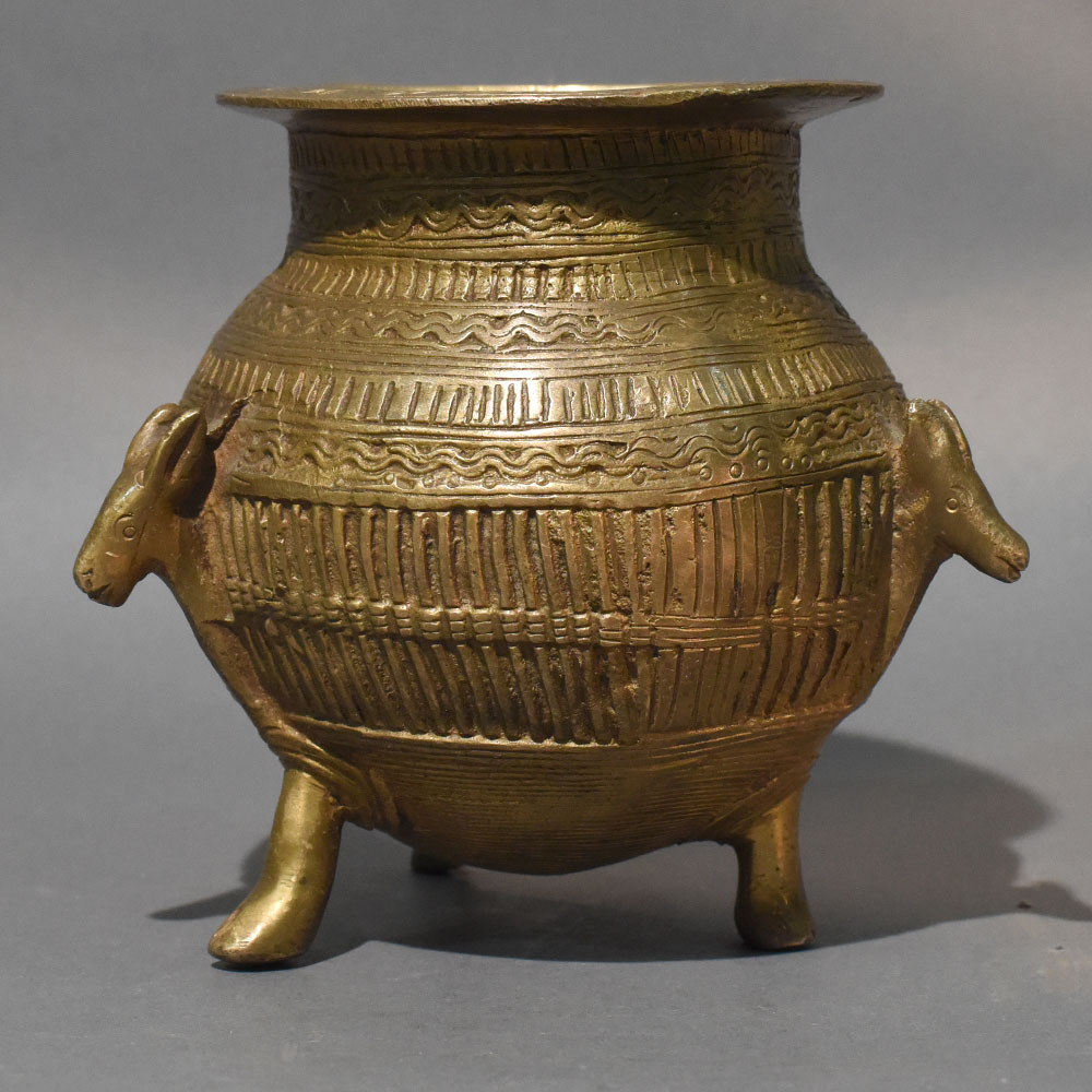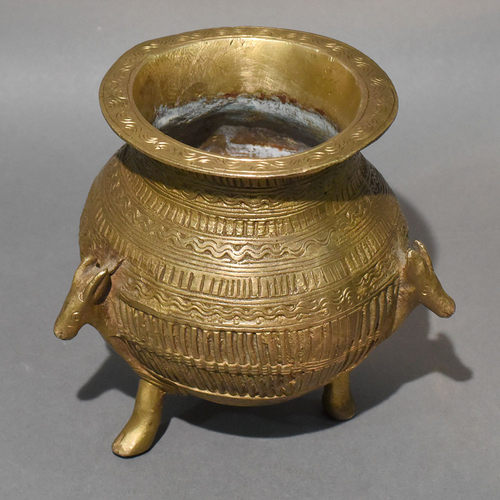 - Solid brass urli pot with tripod base