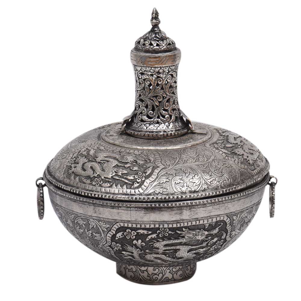 Decorative Chinese Brass Delight Bowl In Silver Finish
