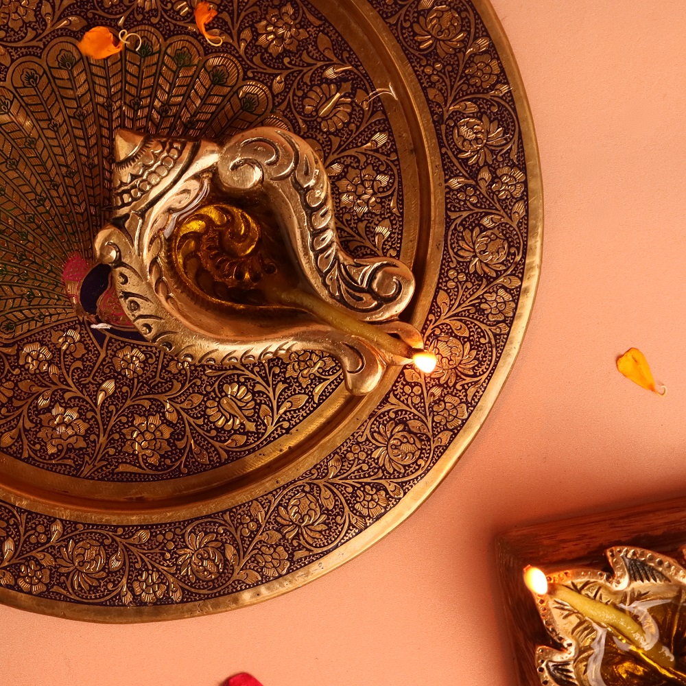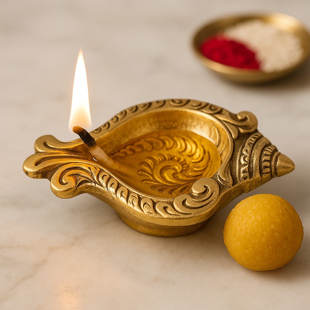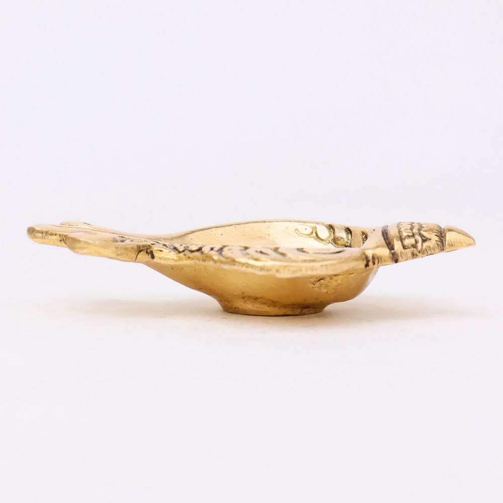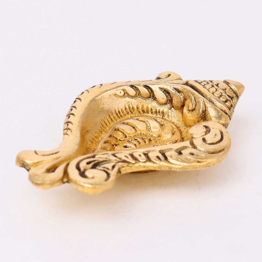 Invite auspicious energy into your home with this Brass Conch Shaped Oil Lamp, a diya inspired by the sacred shankh—a revered symbol of purity, protection, and divine blessings in Hindu tradition. Designed with a golden polished finish and a single wick holder, it combines spiritual depth with artistic elegance. Perfect for Diwali, temple rituals, and devotional spaces, this diya embodies light, sound, and sacred energy.