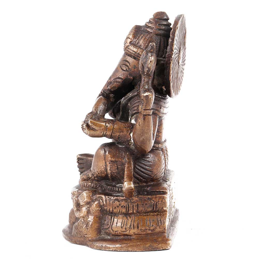 The decorative Ganesha statue features the prominent and auspicious Hindu deity - Lord Ganesha. It features mystical detailing and patterns that make it perfect for gifting. Worshipping Him regularly helps to balance negative energies. He also keeps sorrows, shortcomings, problems, and issues at bay. Worshipping the Holy Ganesha statue with intricate detailing regularly also grants wishes and deepest desires. Follow Vastu guidelines for statue placement to attain the best results.