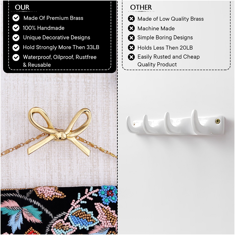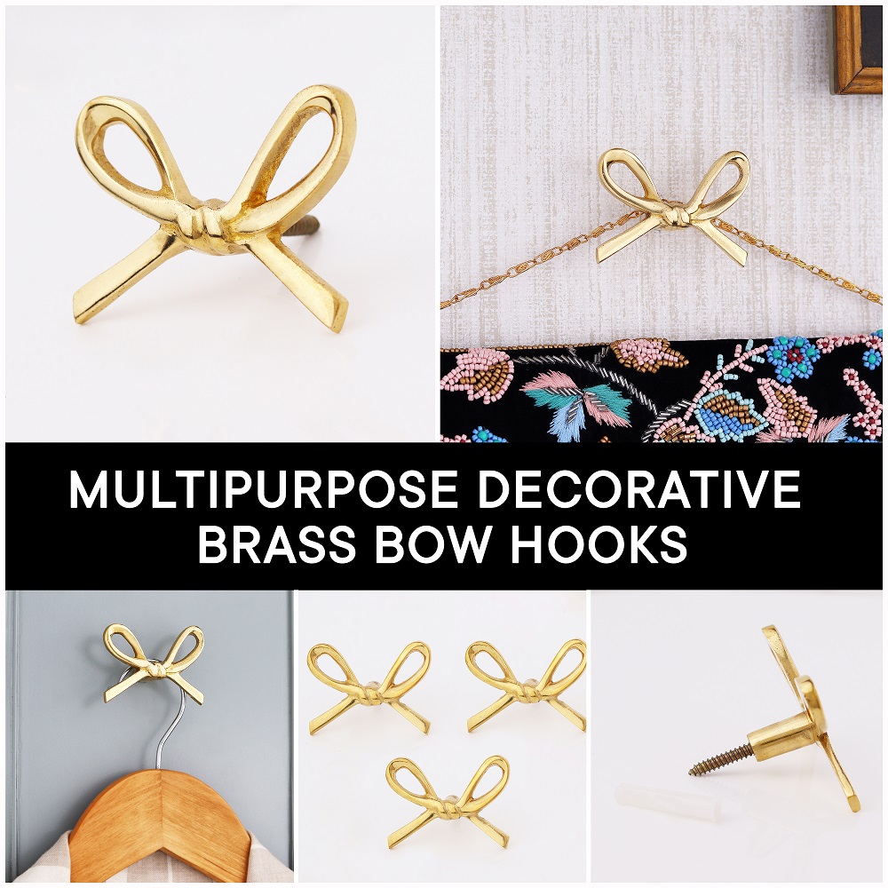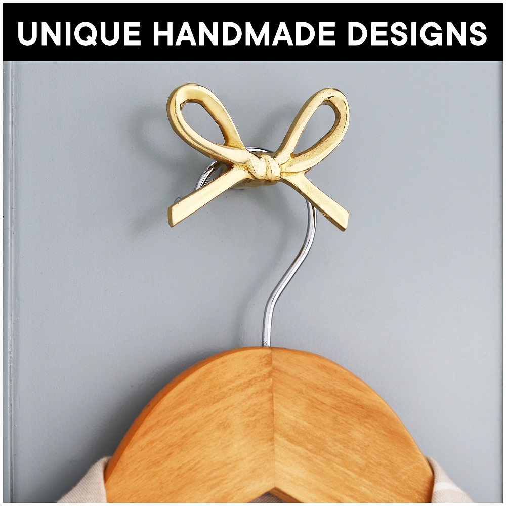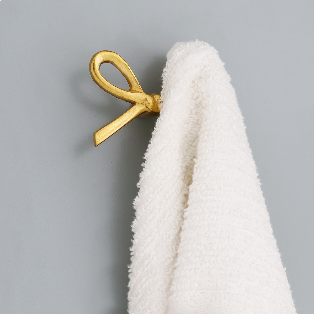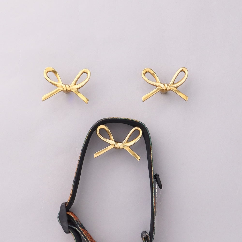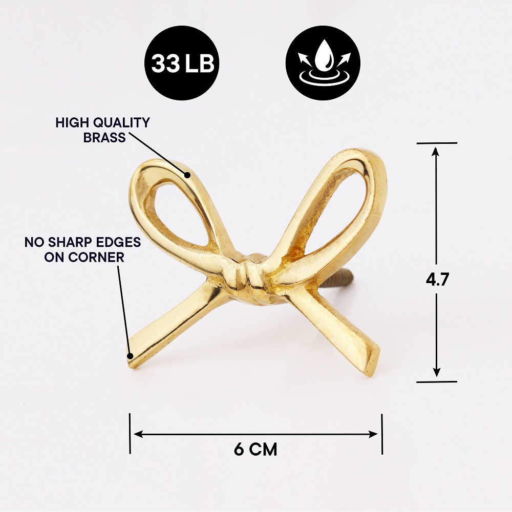 Delicately crafted from solid brass, the Decorative Golden Brass Bow Coat Hook brings both grace and strength to your wall décor. Inspired by classic bow shapes and finished in radiant gold, this wall-mounted hook doubles as a decorative accent and practical storage solution. Handcrafted with attention to detail, it adds a charming, upscale touch to bedrooms, entryways, and vanity areas—making organization feel like part of your interior styling.