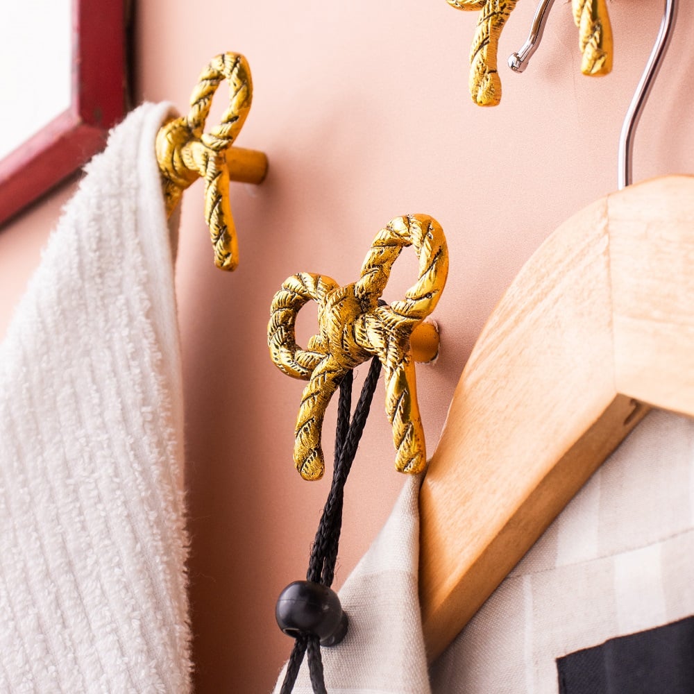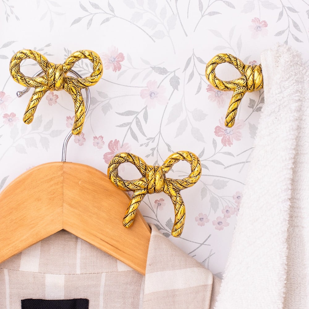 Decorative Gold Bow Metal Wall Hooks-3 Pieces