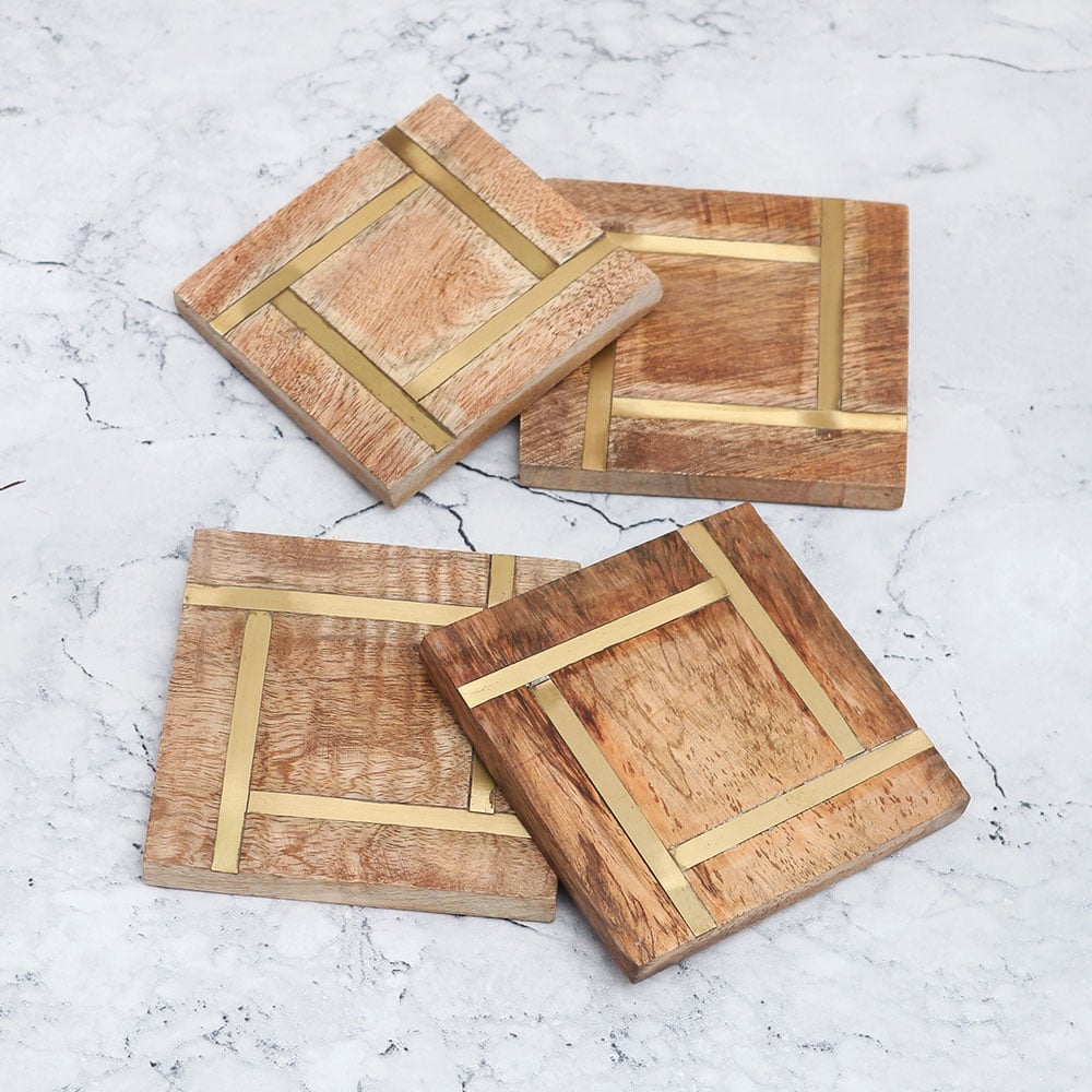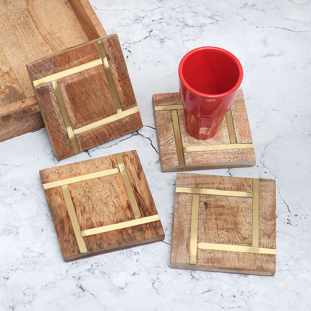 A Wooden Tea Coaster Set which is crafted with utmost precision by highly skilled and experienced Indian craftsmen. This Pack of four coasters is meticulously handcrafted from high-quality wood, ensuring its durability and longevity. Each coaster features a unique square shape, adorned with a captivating brown-coloured pattern and an antique finish, making it an enchanting decorative piece for your home or office. These handmade wooden coasters serve a practical purpose, providing a stylish and functional solution to protect your surfaces from water, tea, juice, or coffee stains. Whether it\'s in the comfort of your home, the bustling atmosphere of an office, a charming restaurant, a luxurious hotel, or a cosy cafe, these coasters effortlessly blend into any setting. With their timeless charm and exceptional craftsmanship, these wooden tea coasters make for an ideal gift for your loved fours on special or festive occasions.