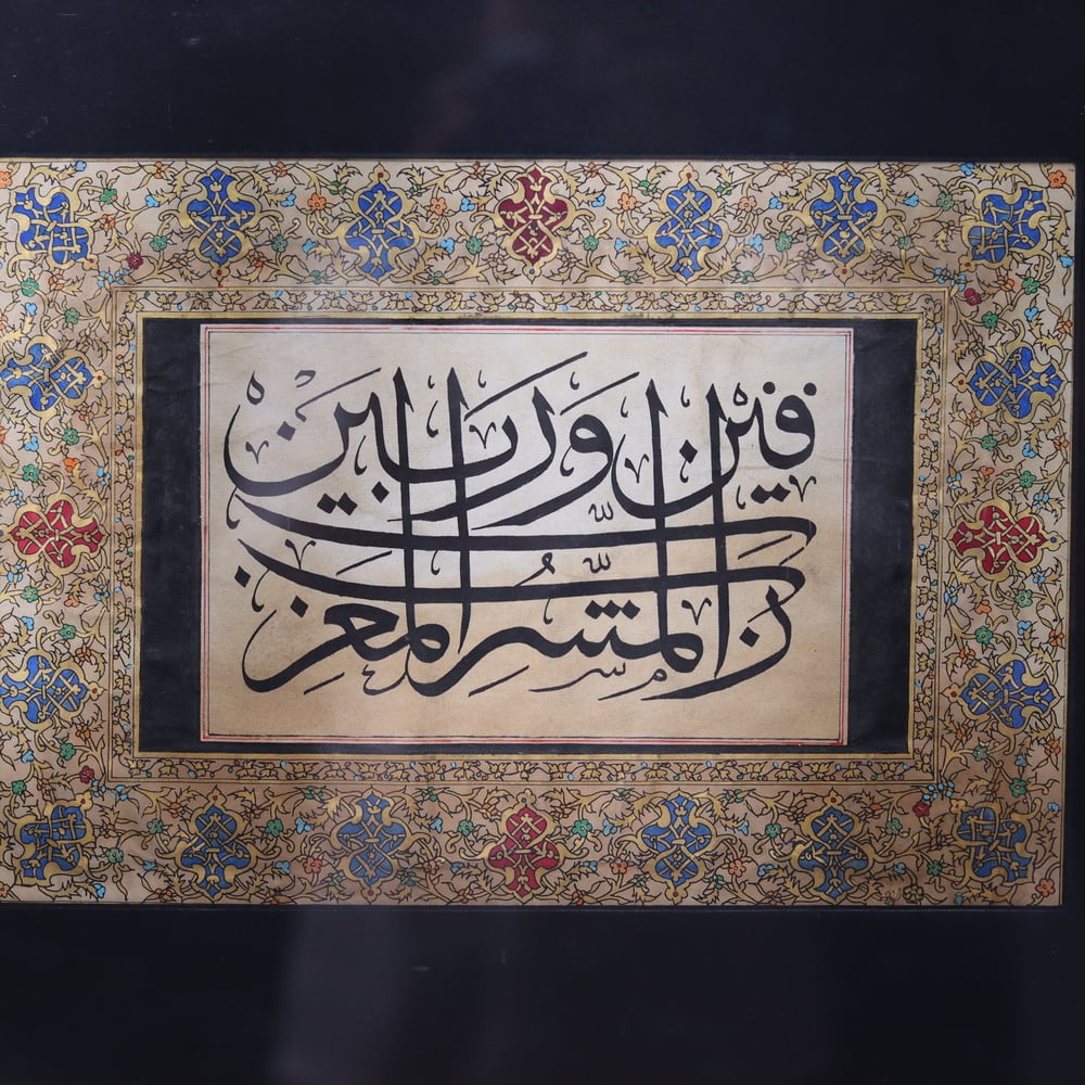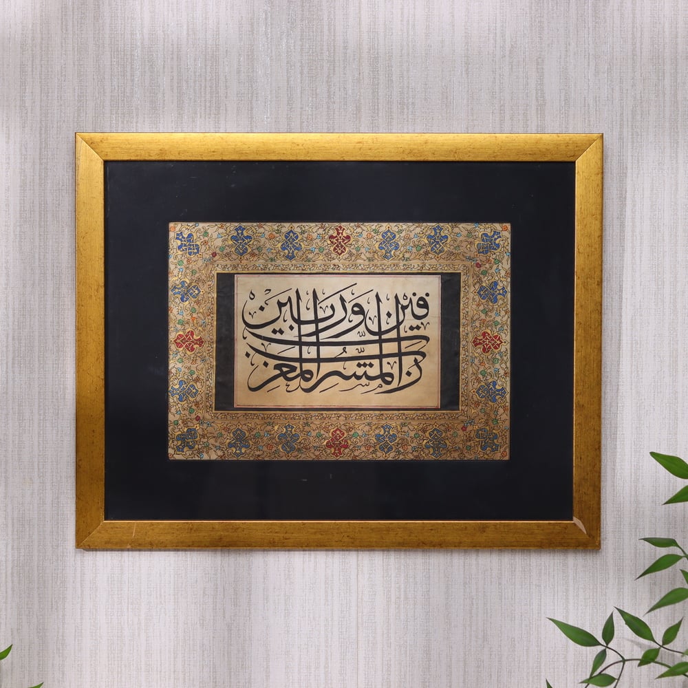 Elevate your space with the breathtaking beauty of this decorative Islamic art piece. Featuring masterful calligraphy that pays homage to the sacred texts, this work of art immerses you in a realm of spiritual contemplation. The intricate, hand-painted design showcases the artist's exceptional skill, with flowing lines and a vibrant color palette that captivates the eye. The ornate border frames the calligraphy, adding depth and sophistication to this stunning piece. Crafted with the finest materials, it's built to last, allowing you to enjoy its timeless elegance for years to come. Whether displayed in your home, office, or place of worship, this Islamic art work will inspire and transport you, reminding you of the profound beauty and wisdom found in the Islamic faith.