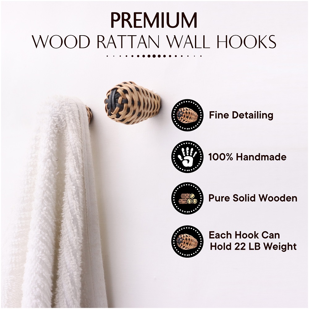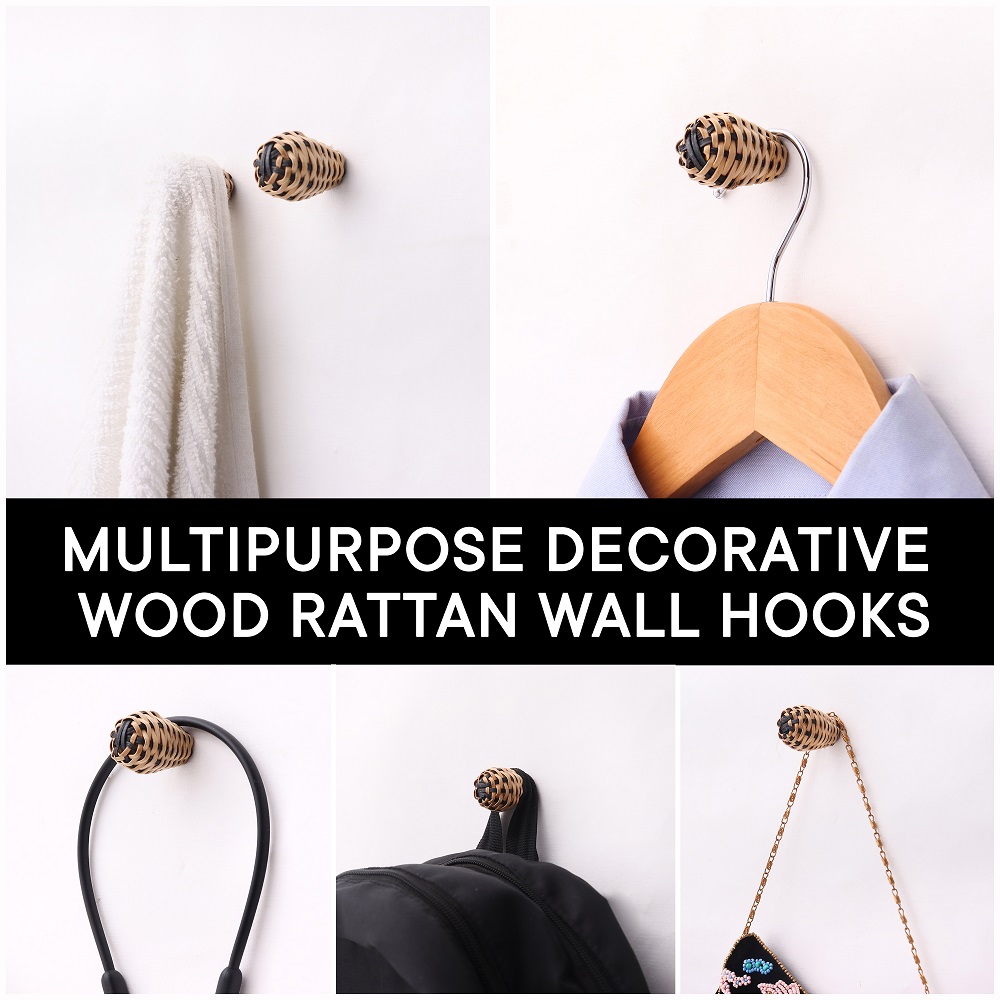 Elevate your wall organization with the Rattan Natural Black Wall Hooks – Set of 6. These handcrafted hooks are made from eco-friendly rattan, known for its strength, flexibility, and lightweight charm. Featuring a bold black finish, each hook balances rustic warmth with a modern, minimalist aesthetic. Whether you're styling your entryway or adding function to your bedroom, these decorative wall hooks bring natural texture and practical elegance to any space.