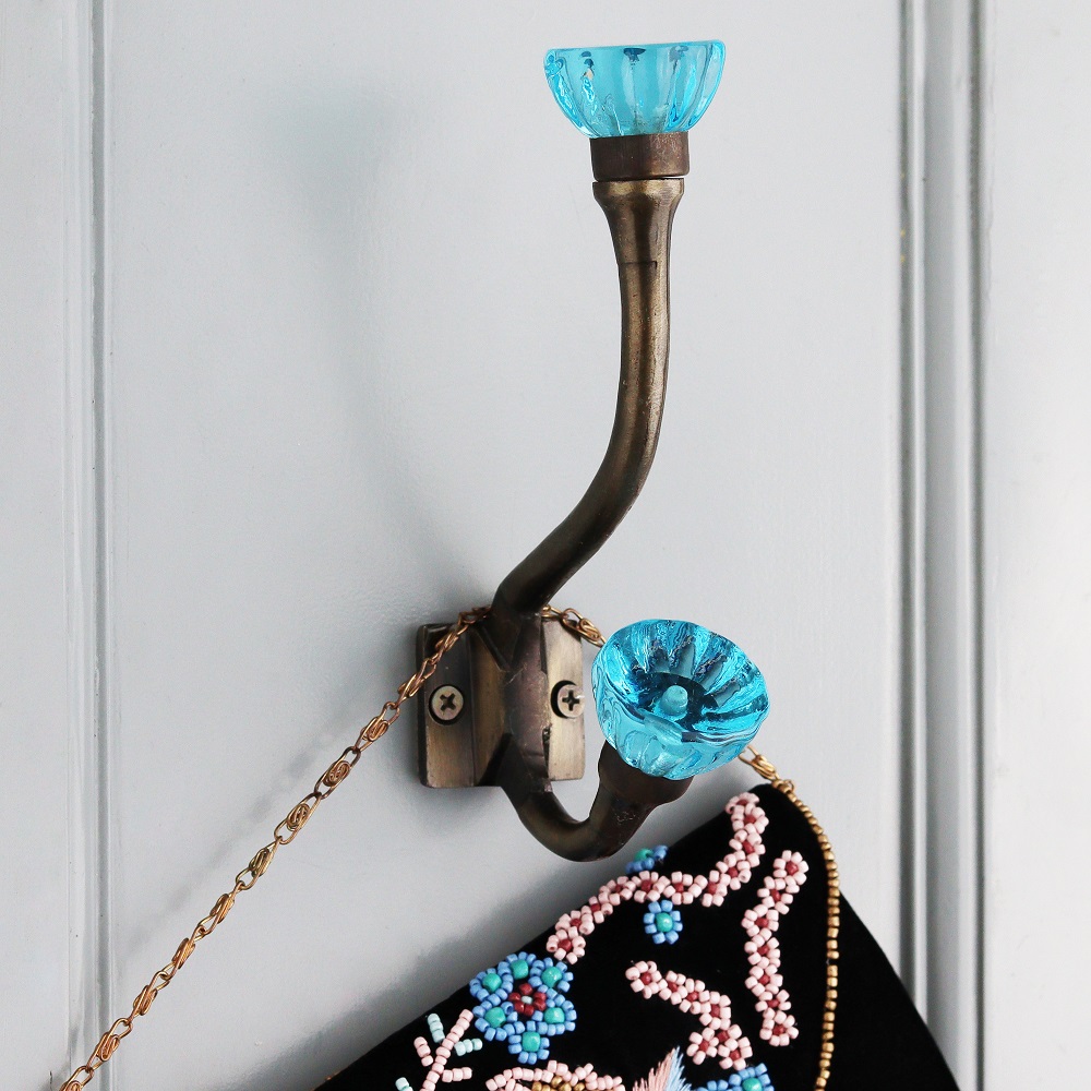 The Decorative Royal Blue Paneled Sides Glass Iron Wall Hook is a vibrant blend of style and strength. Handcrafted with a premium iron base and embellished with rich royal blue glass panels on the sides, this hook brings a bold yet elegant touch to your walls. The glass detail adds a pop of color and sophistication, while the sturdy iron ensures lasting functionality. Designed to elevate your space, this hook is both a striking décor element and a practical storage solution.