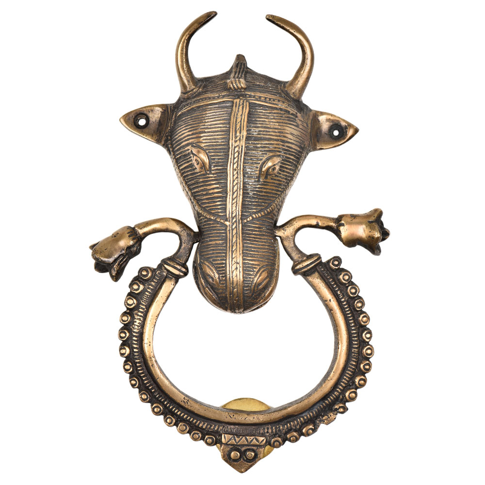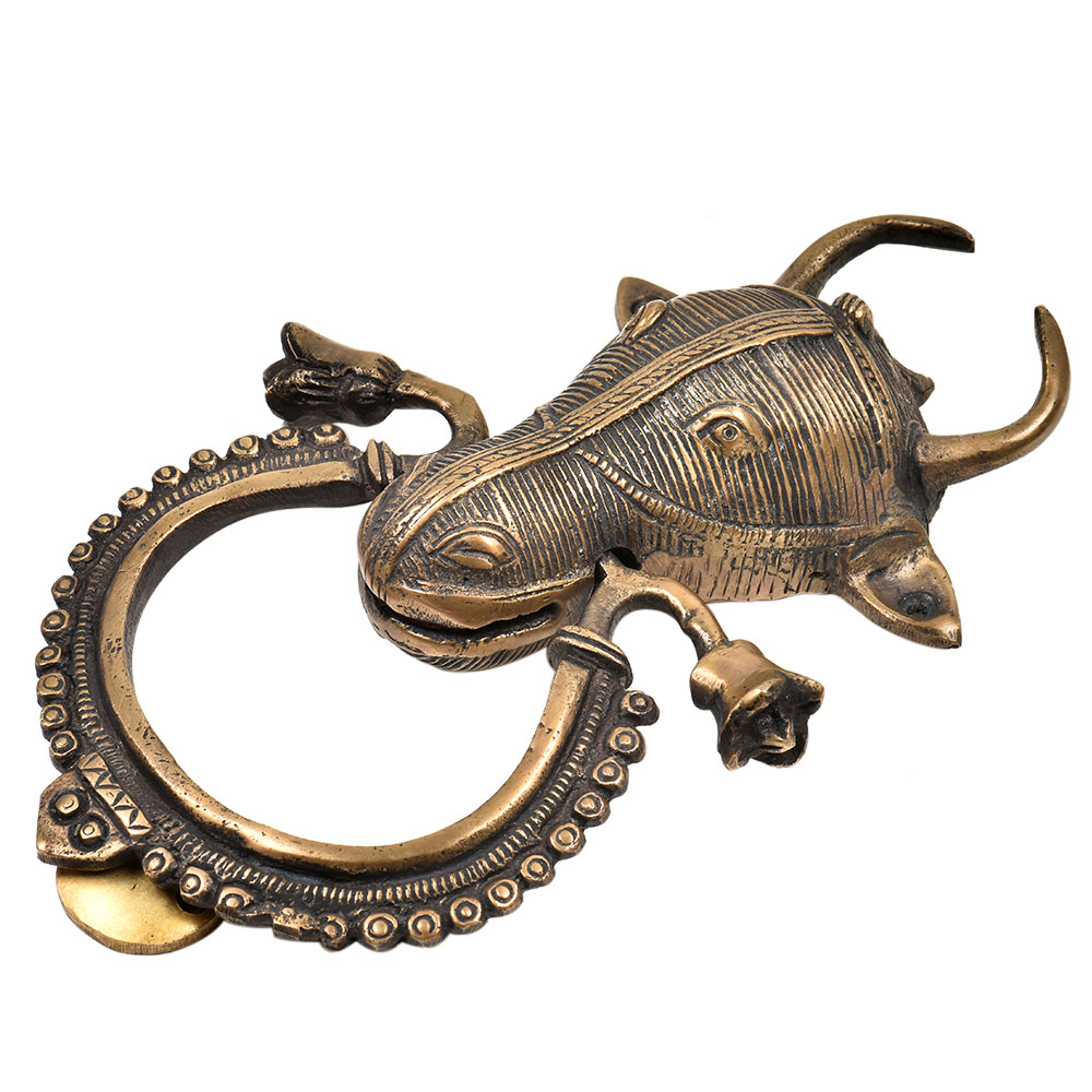 Decorative Tribal ox Head Bull Brass Flower Carved Door knocker