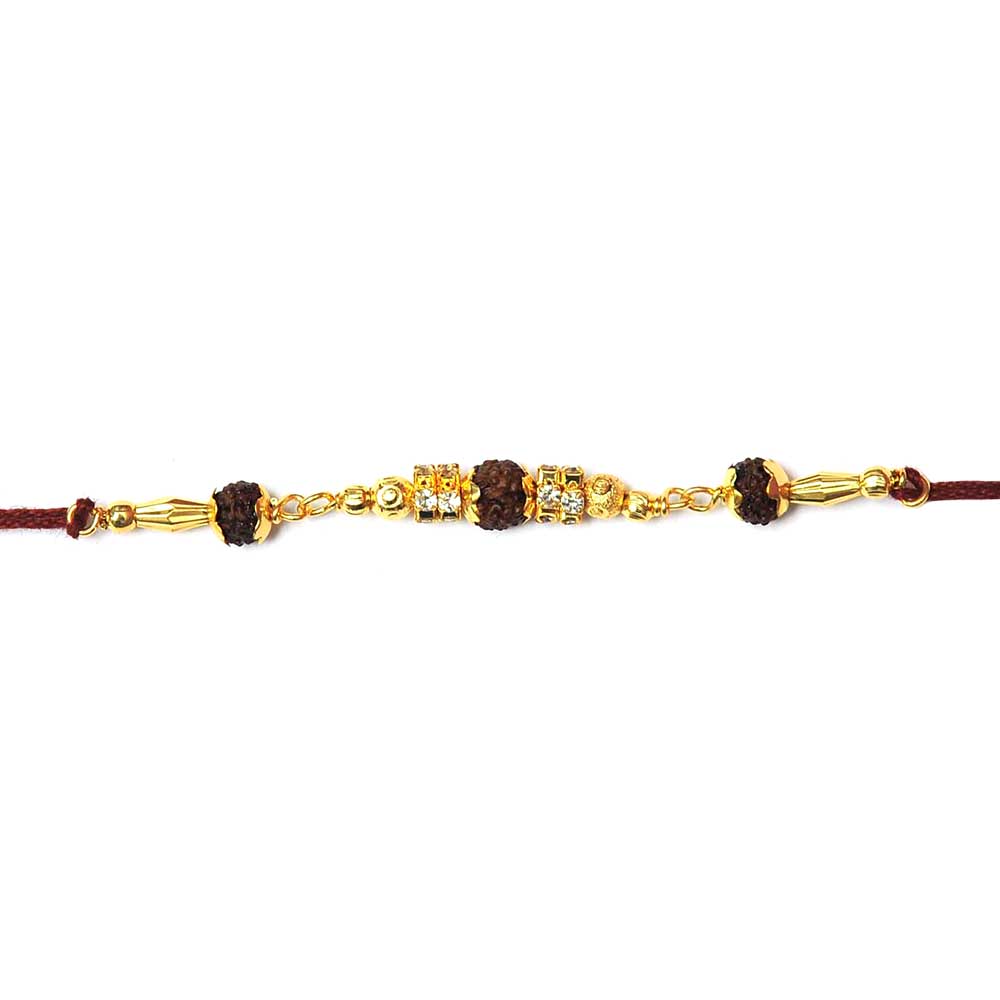 Delicate Golden Rakhi with Rudraksh