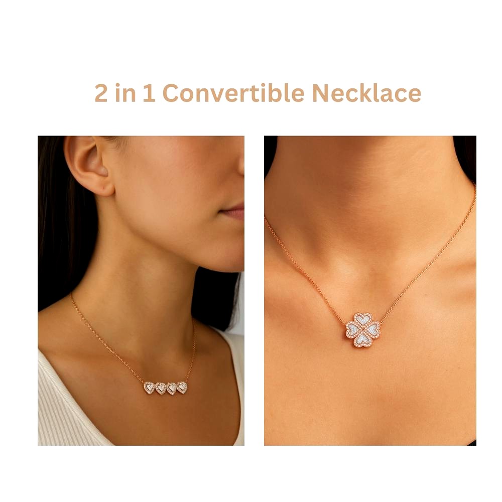 The set includes a four heart floral motif and a row of linked heart charms, allowing you to switch between expressive or minimal styling with ease.