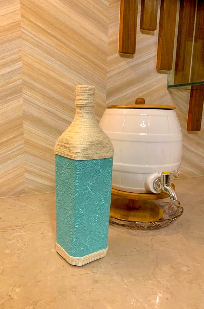 its a designer glass bottle decorated with natural fiber jute. best to use as a home decor in your living room Also its a uniqe gift for friends and family I can also make it in various other colours as per your requirment