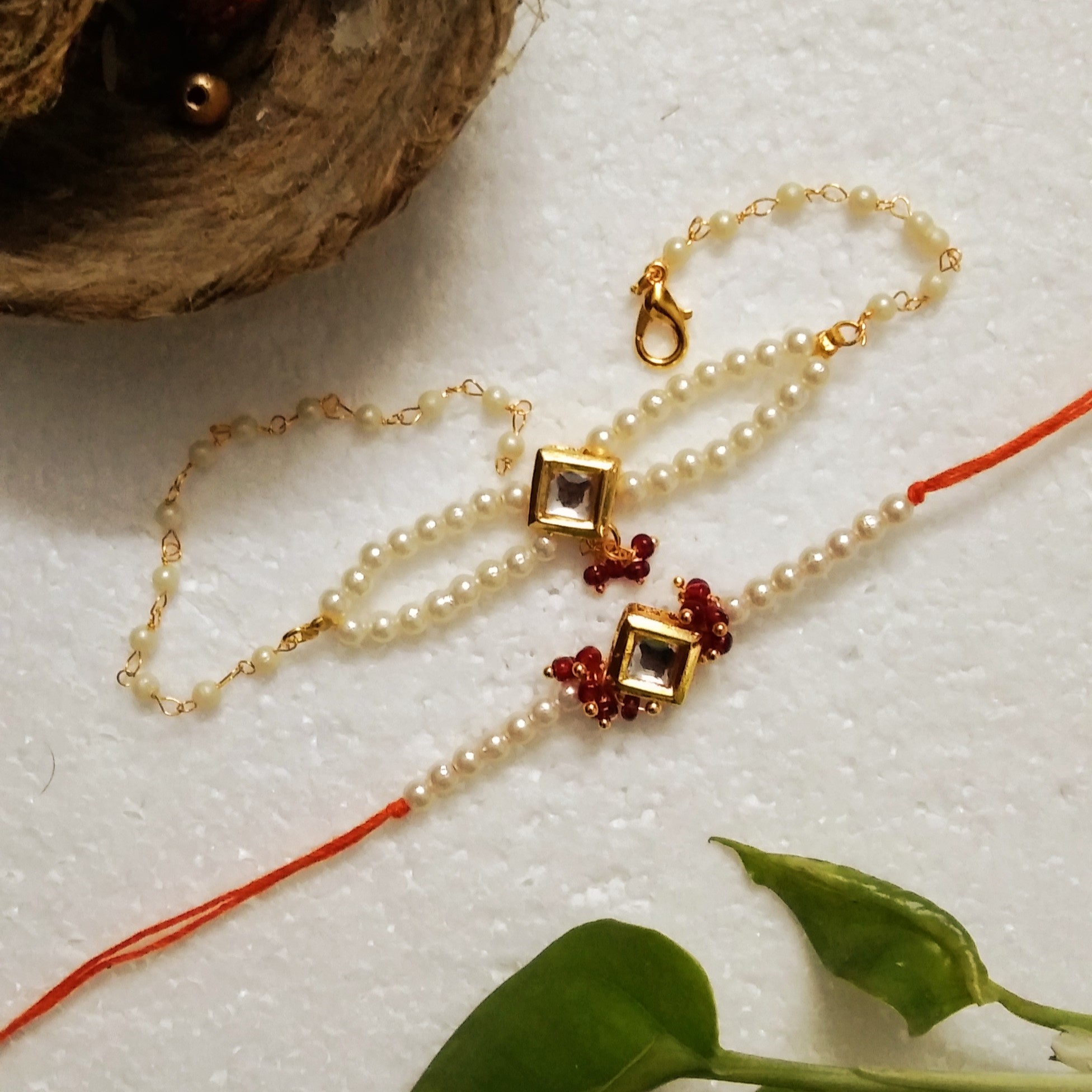 Celebrate Raksha Bandhan with a unique rakhi crafted from kundan/acrylic beads.