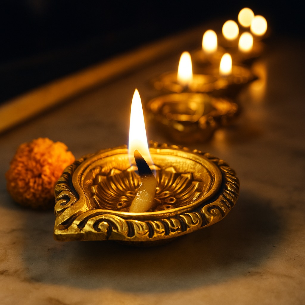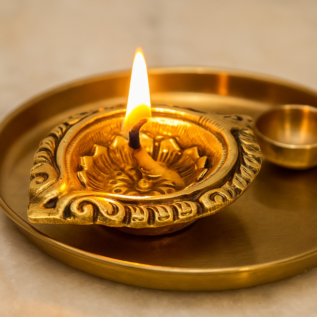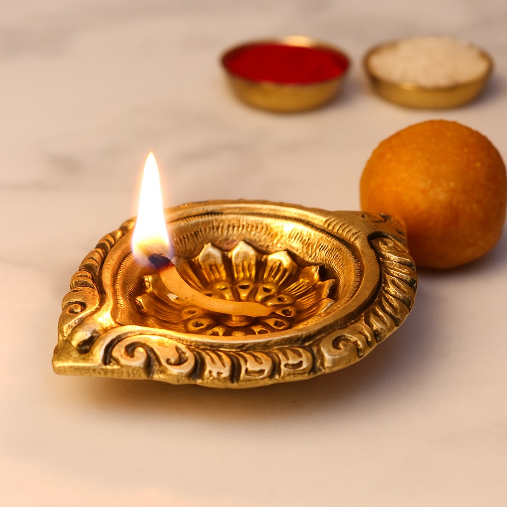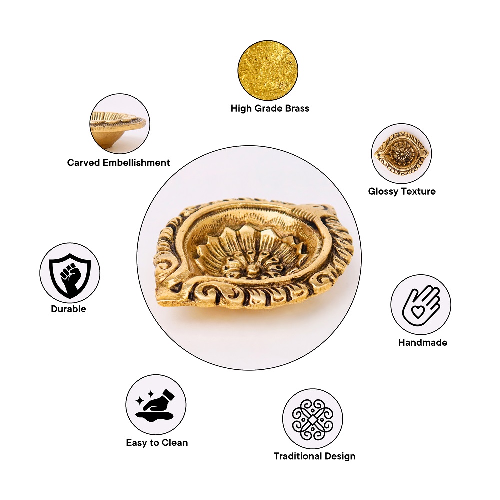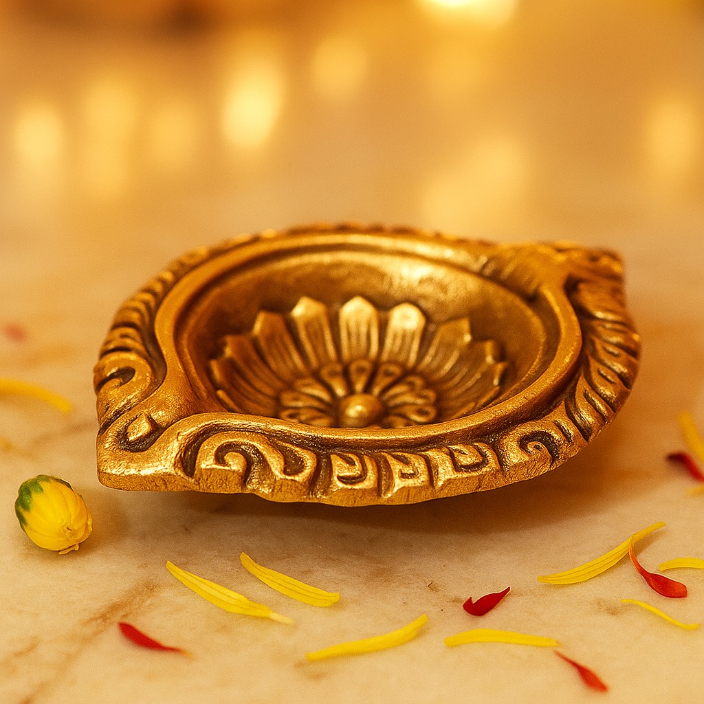 Celebrate light, tradition, and artistry with the Designer Round Brass Oil Lamp Festive Diya. Handcrafted from high-quality brass, this diya shines with a golden finish and features a classic round design that symbolizes unity, eternity, and wholeness. Its graceful form makes it perfect for both spiritual rituals and festive décor, adding elegance to every sacred corner.