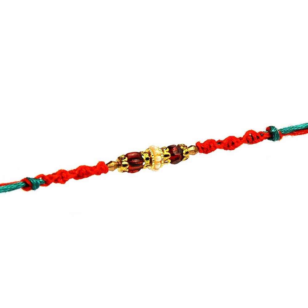 Desinger Red Beads Rakhi with Beautiful Pearl Ring
