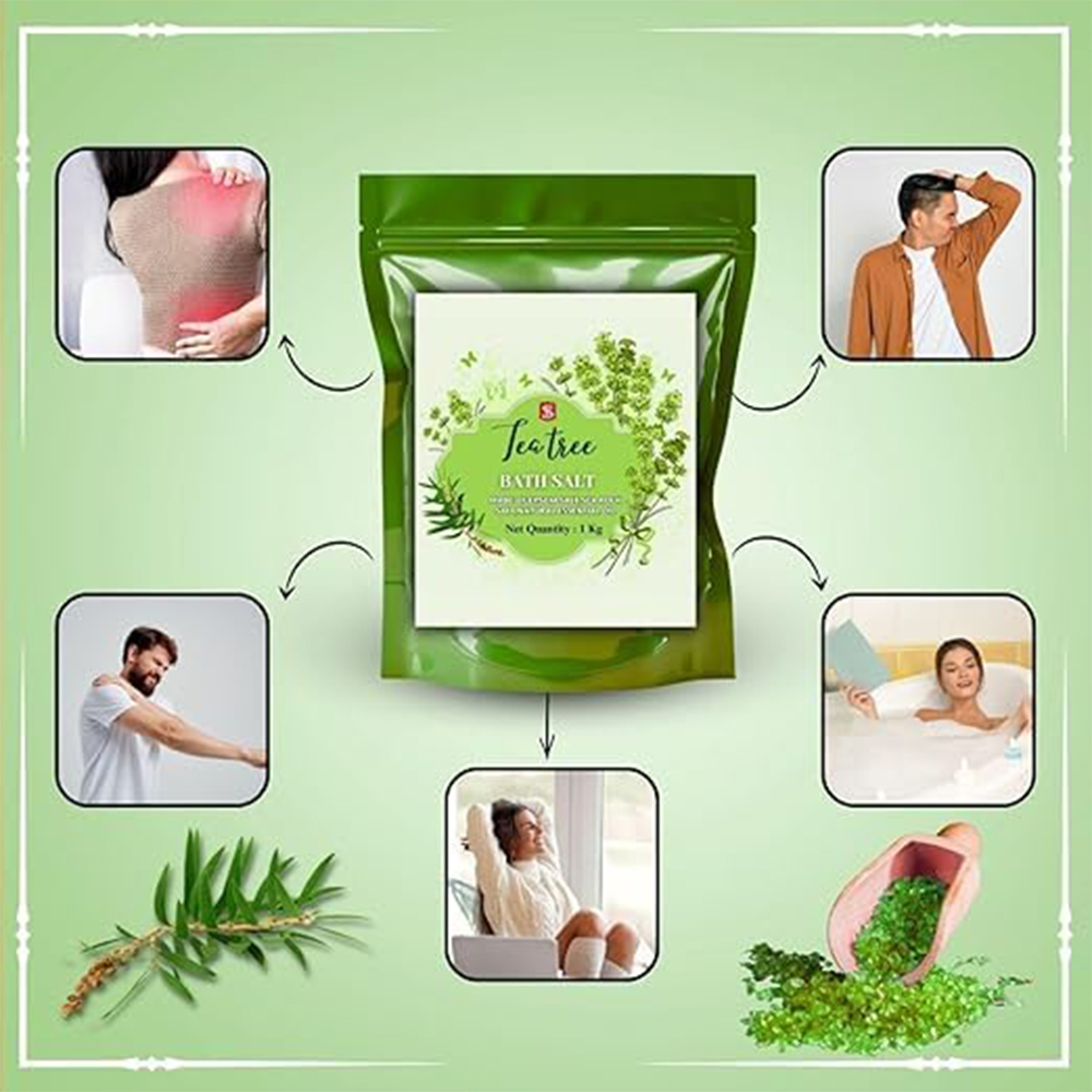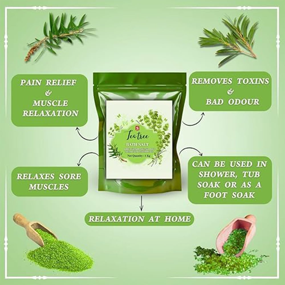 Packed with the natural goodness of Tea Tree, this bath salt blend combines mineral-rich salts with the cleansing power of tea tree essence. Ideal for soothing tired muscles, detoxifying the body, and refreshing the skin, it brings the spa experience right into your home. Packed & quality-checked by Indianshelf.