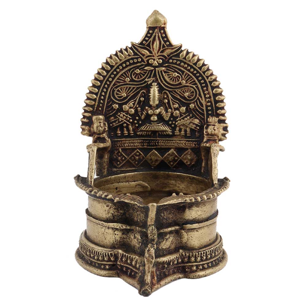 Devi Kaja Lakshmi Brass Oil Festival Lamp is a traditional diya with a small container enough to light a single wick on Diwali, weddings, ceremonies , inaugural events and many more. Gift for your near and dear ones.