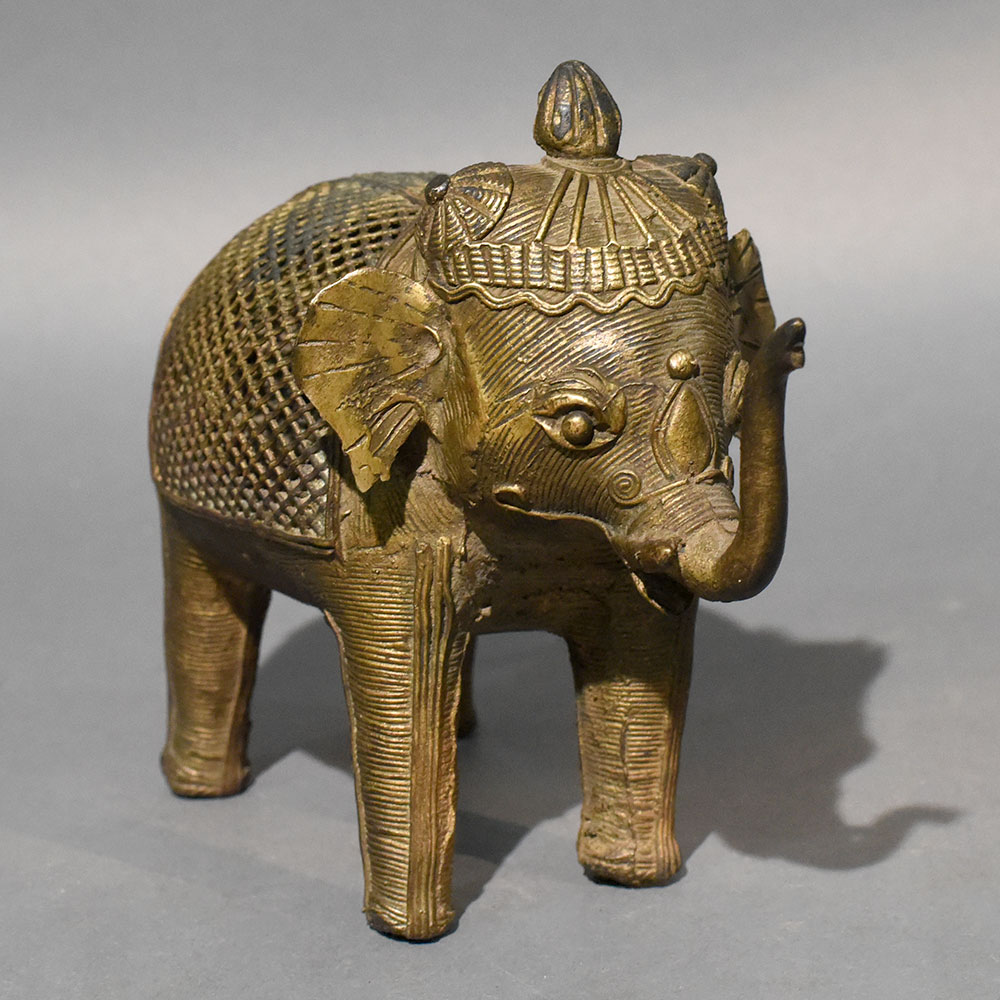 - Traditional Dhokra brass elephant sculpture