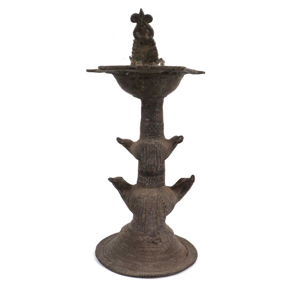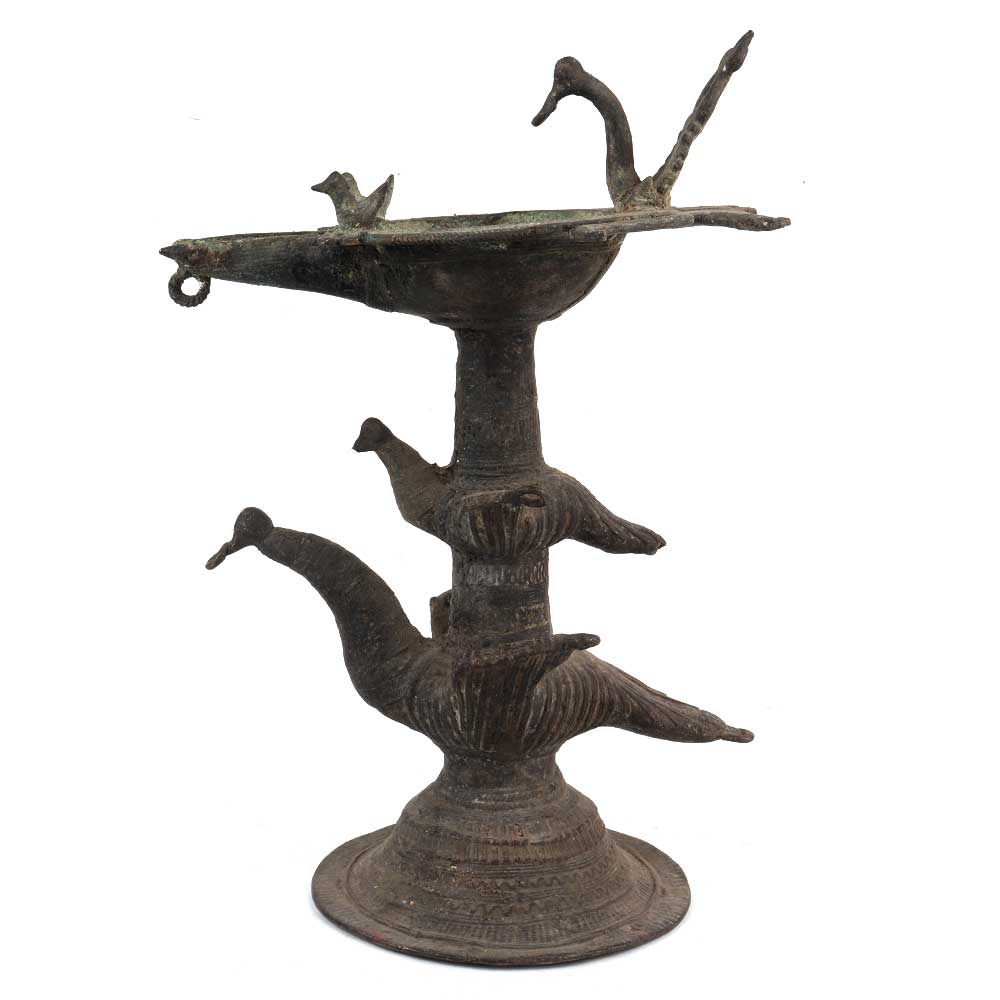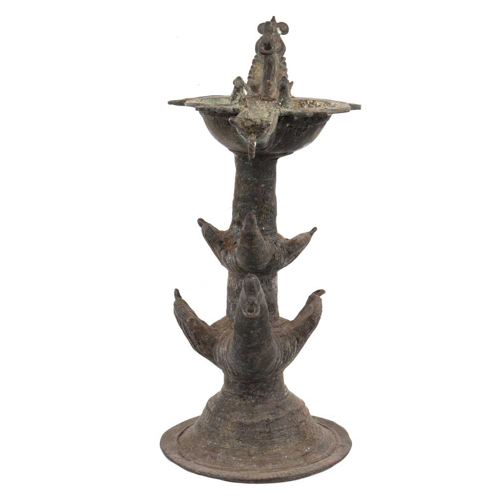 Dhokra Brass Standing Oil Lamp On Bird Base