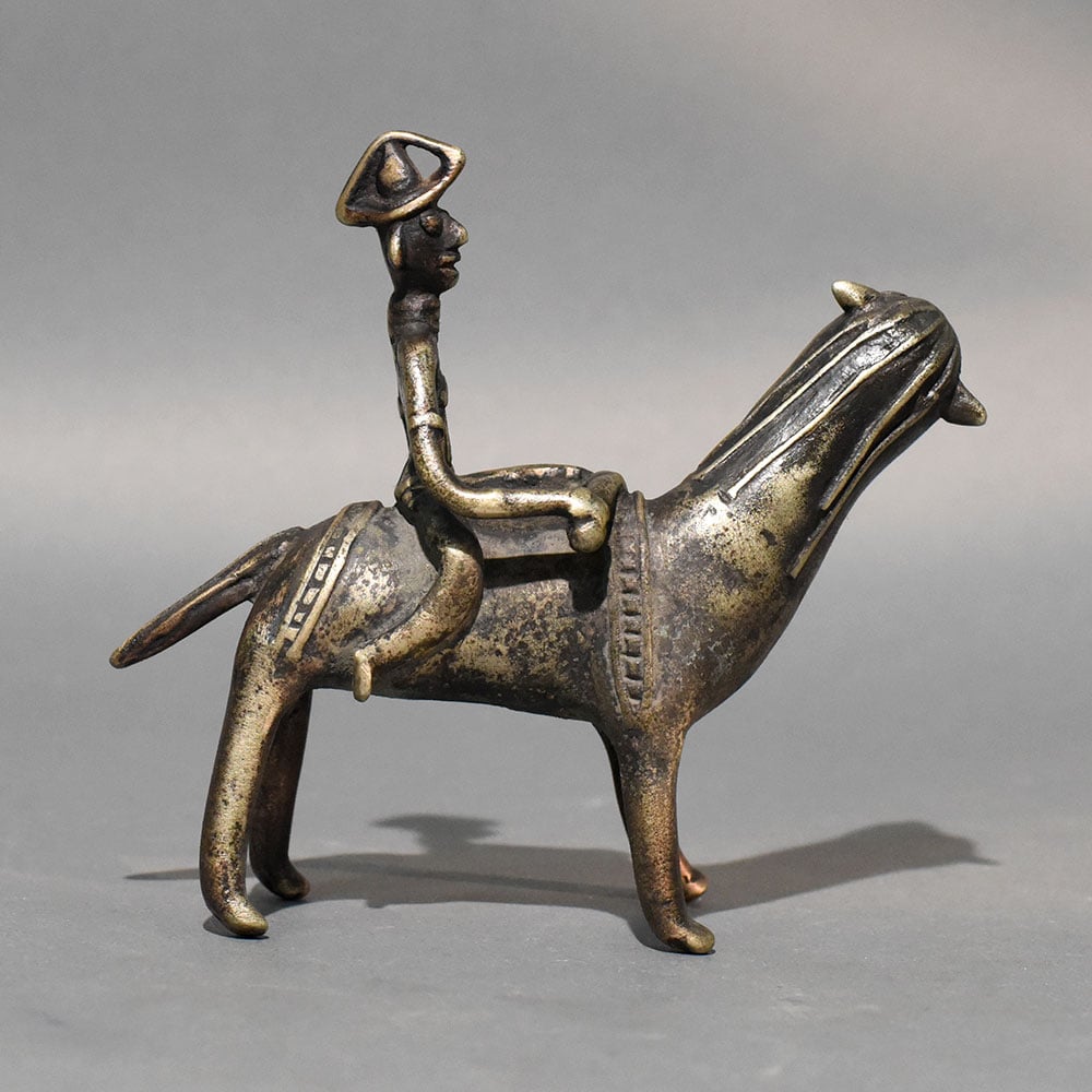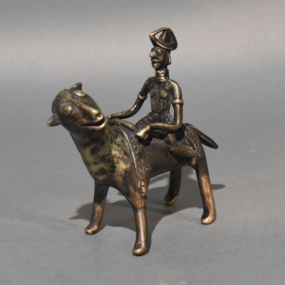- Dhokra tribal rider and animal brass sculpture