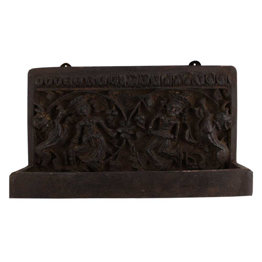 Dhokra Wooden Rack. It is Handmade by the Skilled Craftsmen of India. It can be used to Put Worship Items.