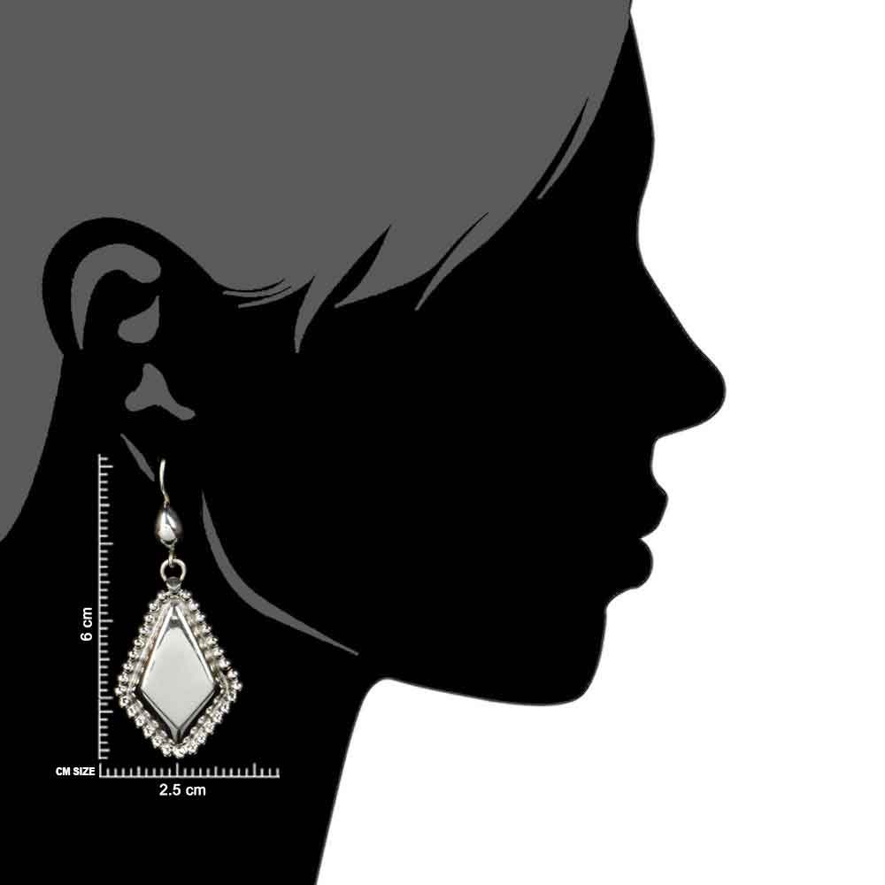 Diamond shape 92.5 Sterling Silver Dangler Earrings with a decorative border looks good when worn with traditional as well as modern outfits. Perfect for girls and women of all age and group to be worn on a daily basis, to office , to a family picnic, weddings, engagements, valentine day. Comfortable to wear it everyday as it comes with a hook .Gift it to your friends and relatives.