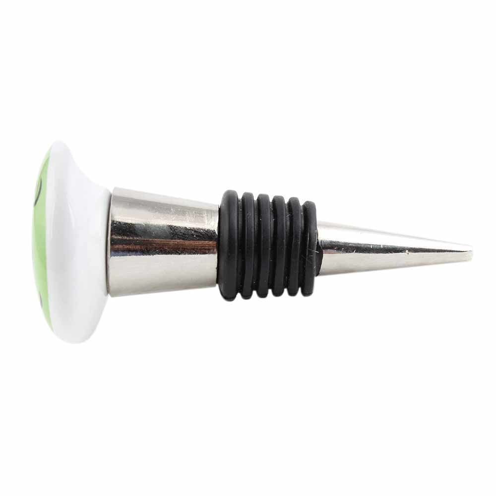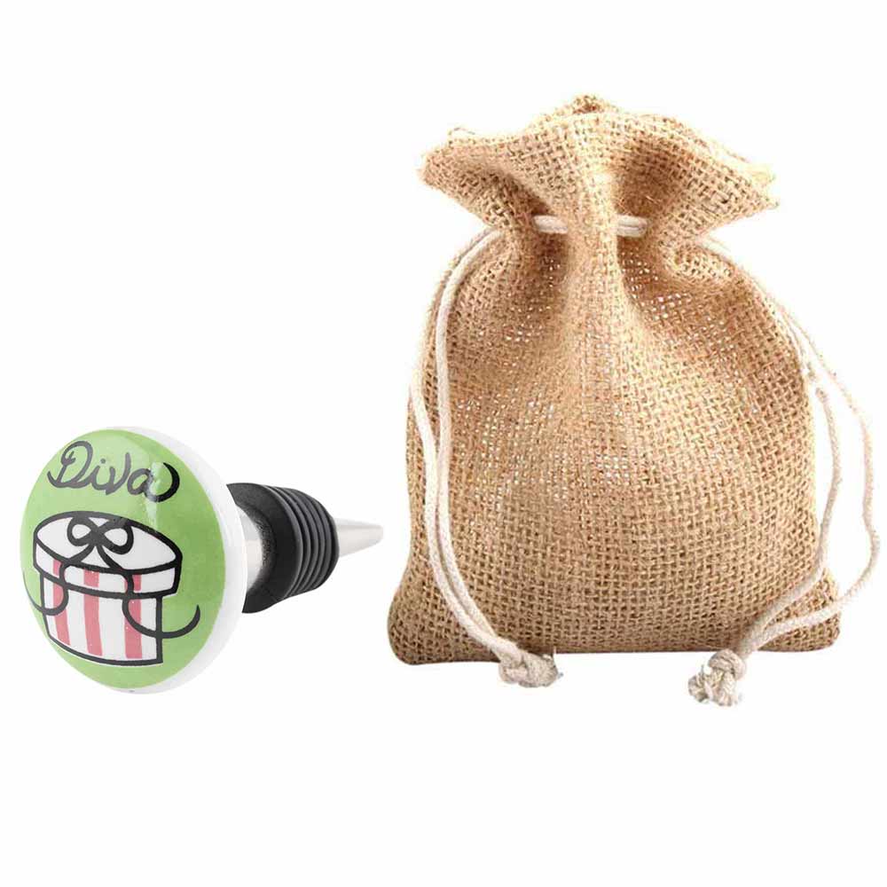 Diva Pea Green Ceramic Flat Wine Bottle Stopper. Zinc Alloy Wine Bottle Stopper with Attractive Jute Bag Packaging.