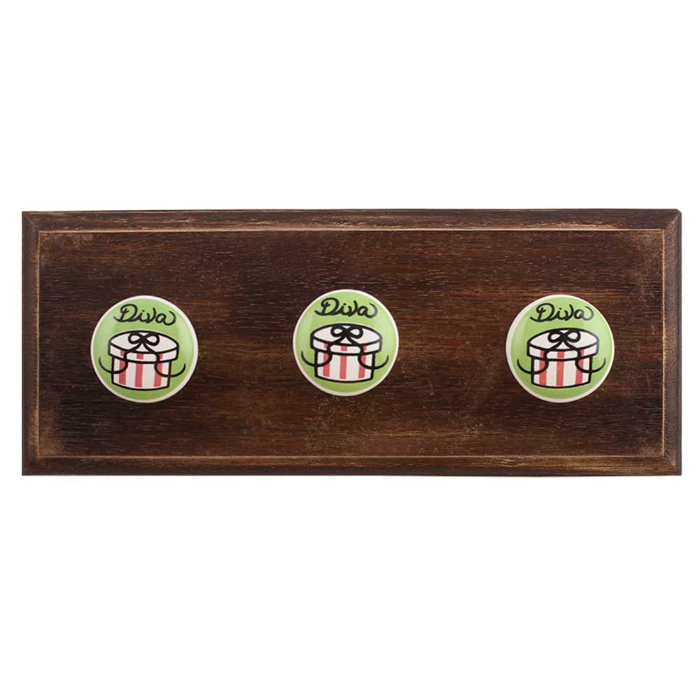 Diva Pea Green Ceramic Flat Wooden Hooks