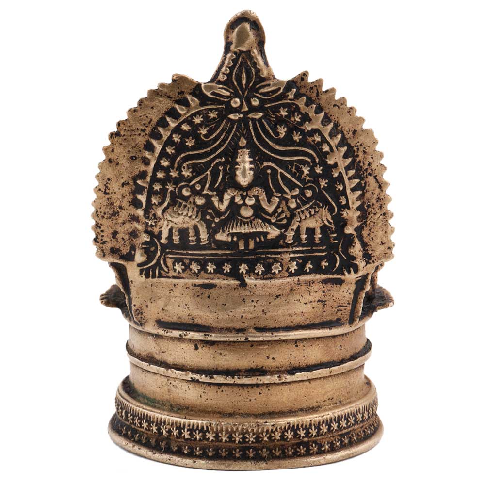 Brass Kamakshi Oil Worship Lamp used for illuminating your interiors on Diwali, weddings, inauguration ceremonies etc. Adds spiritual flavor to your decor. Vegetable oil, mustard oil or desi ghee can be used to light the lamp with cotton wicks.