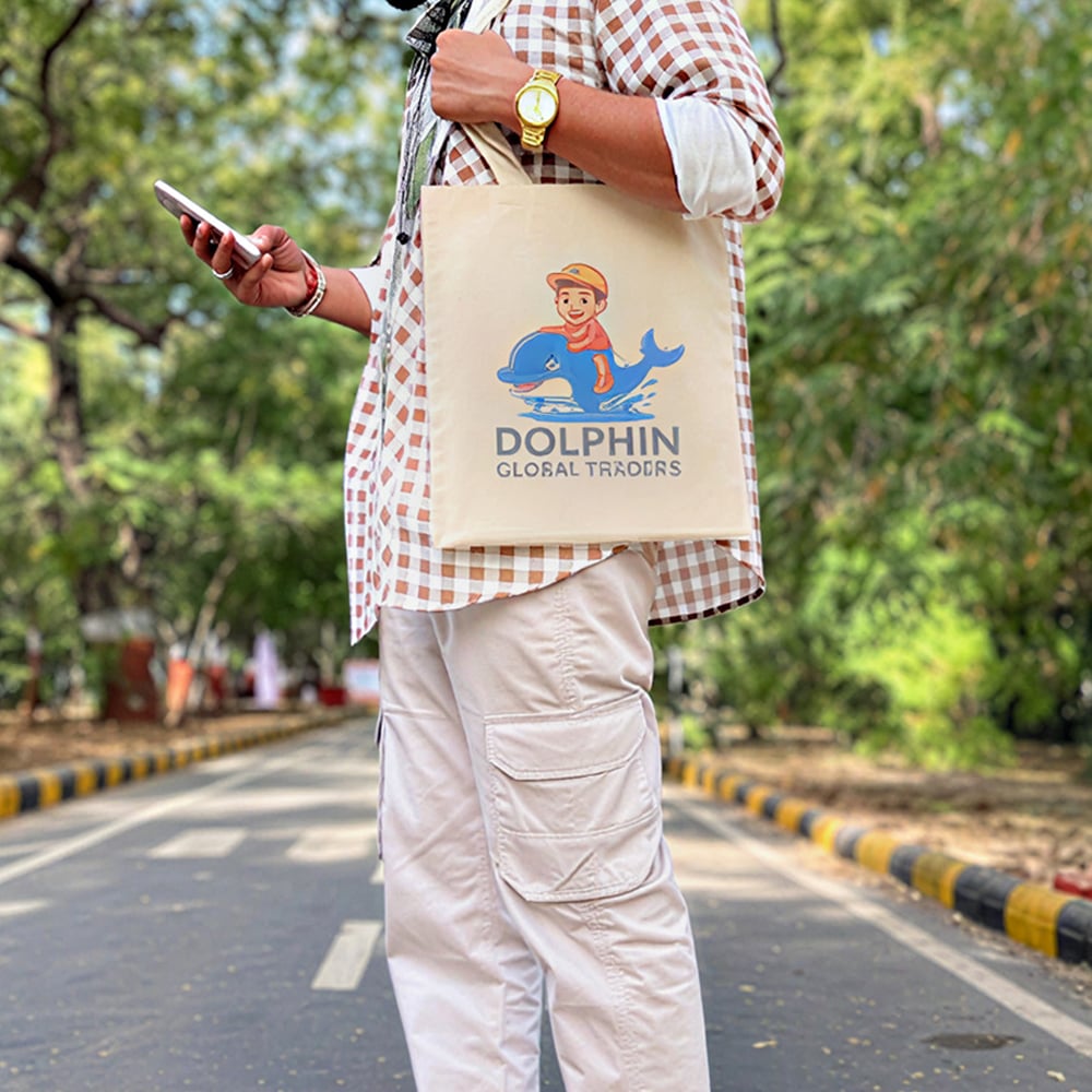 The Dolphin Voyage Cotton Tote Bag captures a sense of lightness, movement, and everyday charm through a playful illustrated composition. Featuring a cheerful dolphin graphic with a youthful character motif, this tote blends utility with visual warmth, making it a functional accessory that feels relaxed, expressive, and inviting.