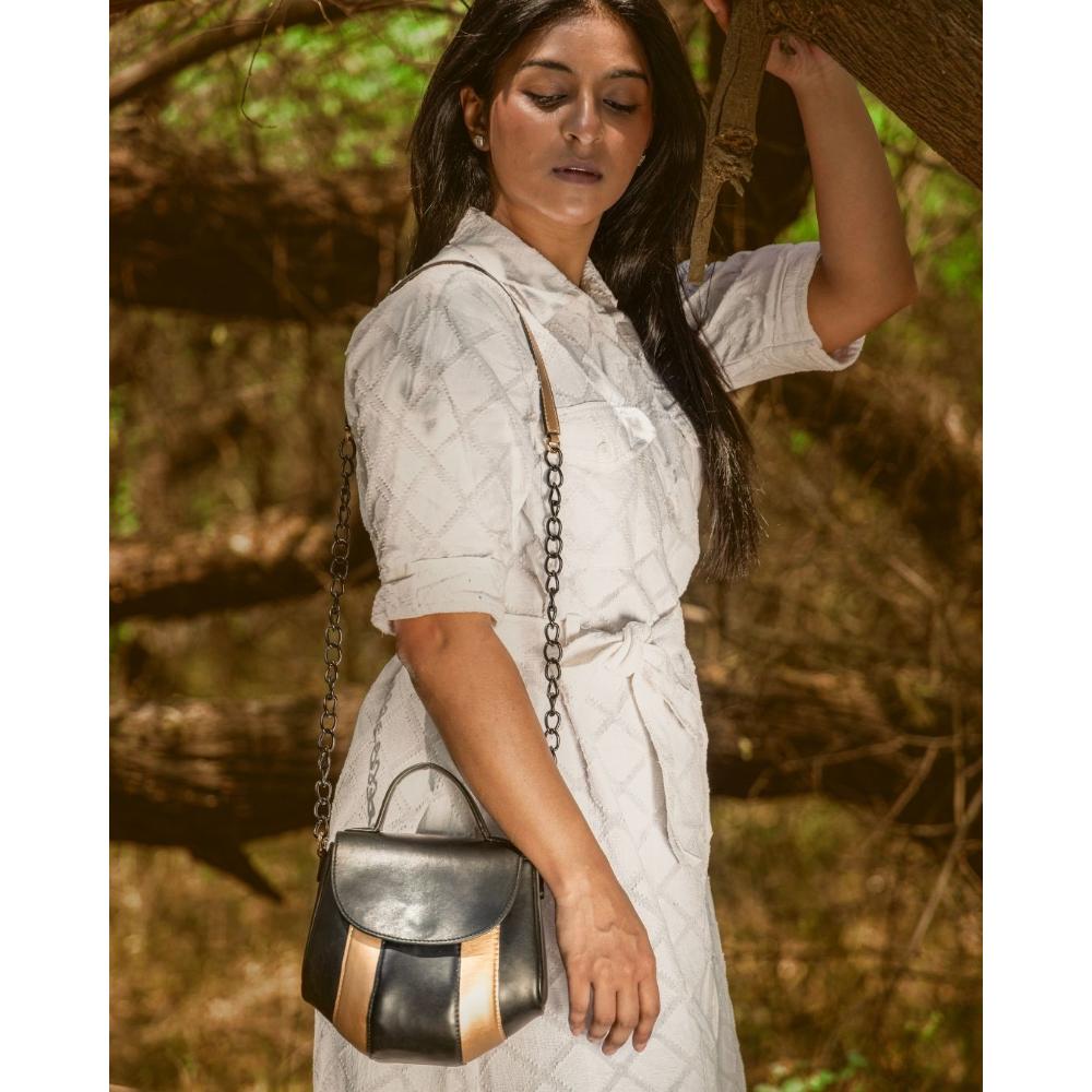 This dual tone black tan vegan leather sling embodies dual tone and vegan leather craftsmanship. Ideal for stylists and lifestyle connoisseurs, it offers a statement of style and function. Packed & quality-checked by Indianshelf.